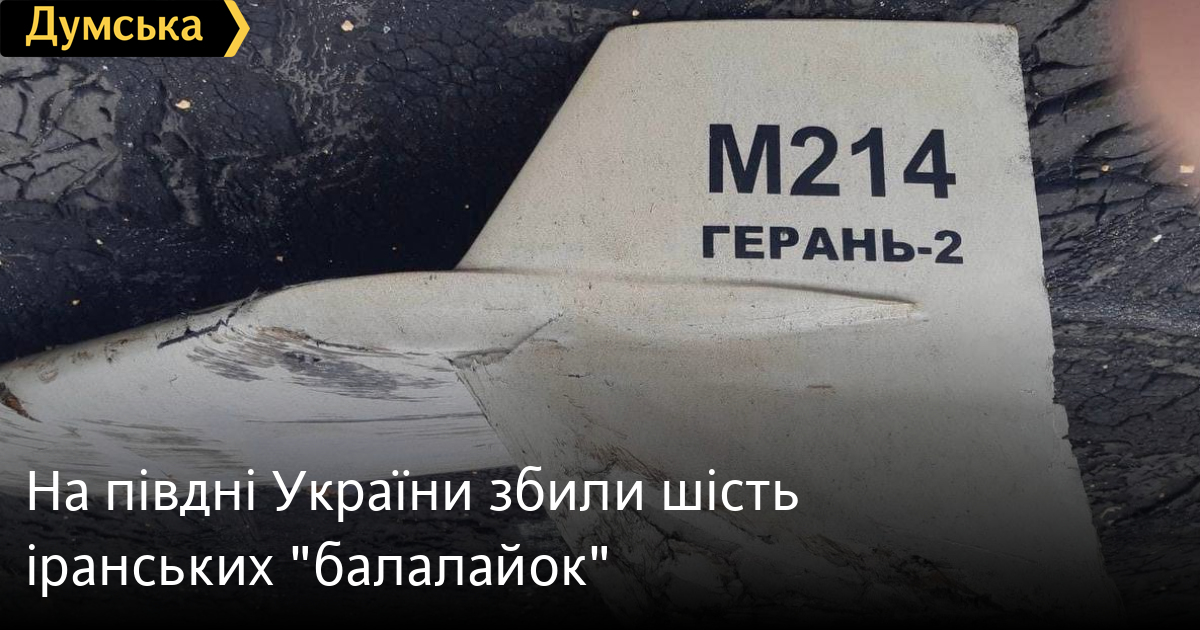 «Шість дронів-камікадзе знищено зенітними ракетними підрозділами Повітряних Сил на півдні країни», — йдеться в офіційному повідомленні Повітряних сил.