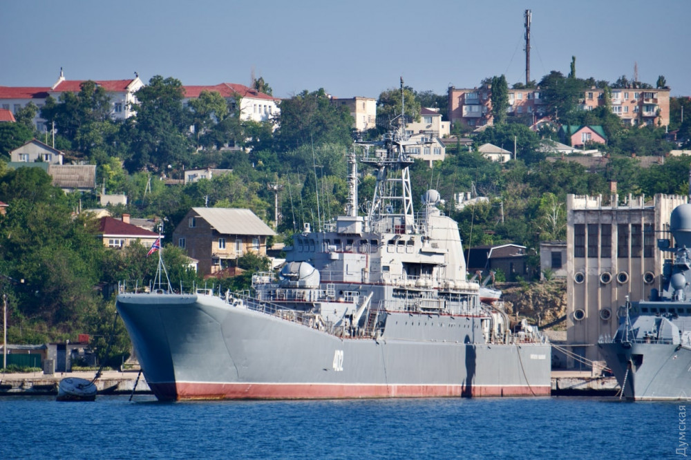 На большом десантном корабле ВМС Украины «Константин Ольшанский», захваченном российскими оккупантами в марте 2014 года, подняли флаг и гюйс военно-морского флота страны-агрессора.