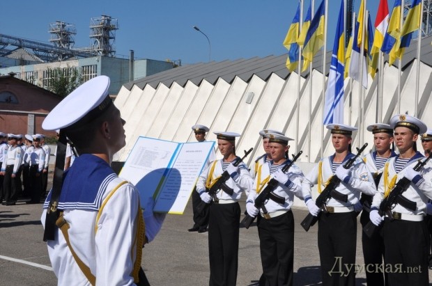 92 первокурсника факультета военно-морских сил и отделения военной подготовки мореходного колледжа технического флота Одесской национальной морской академии приняли сегодня присягу на верность украинскому народу.