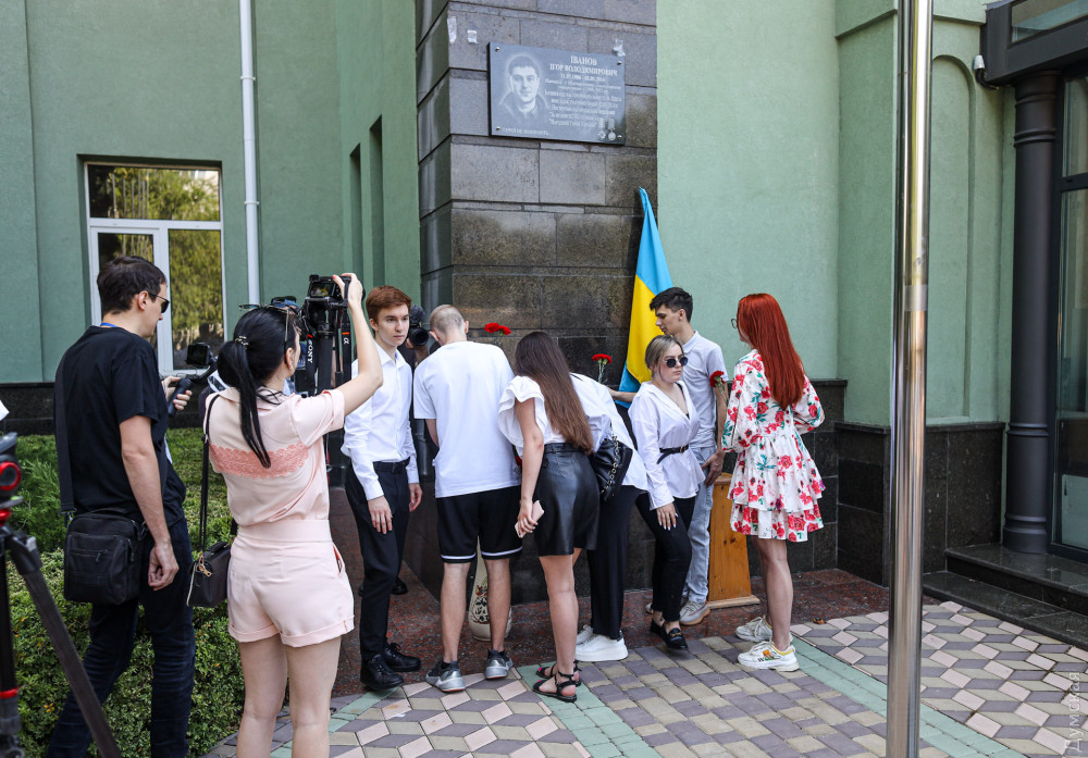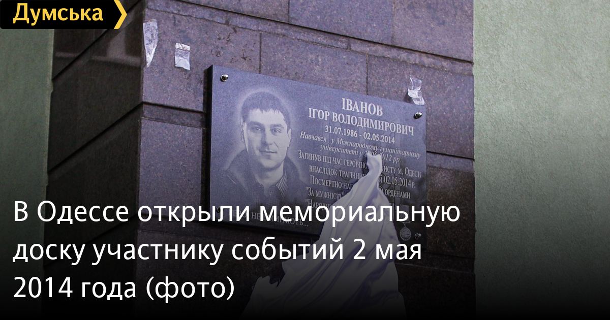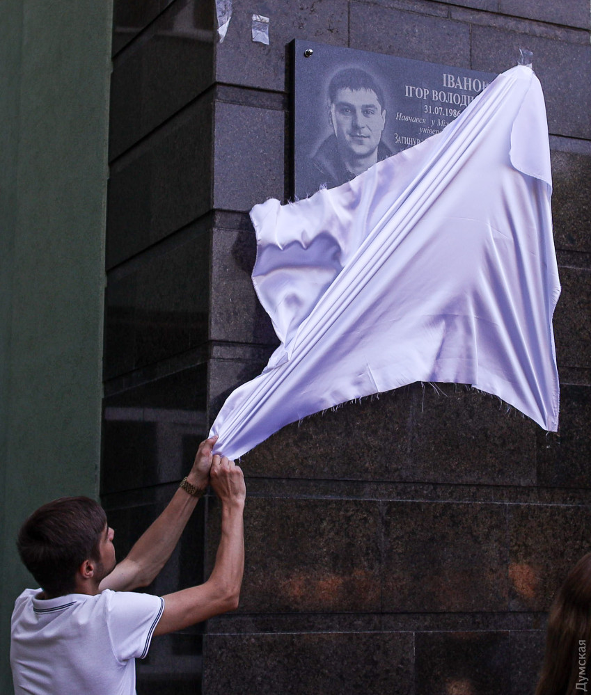 Мемориальную доску проукраинскому участнику одесских событий 2 мая 2014 года Игорю Иванову открыли сегодня на здании Международного гуманитарного университета.