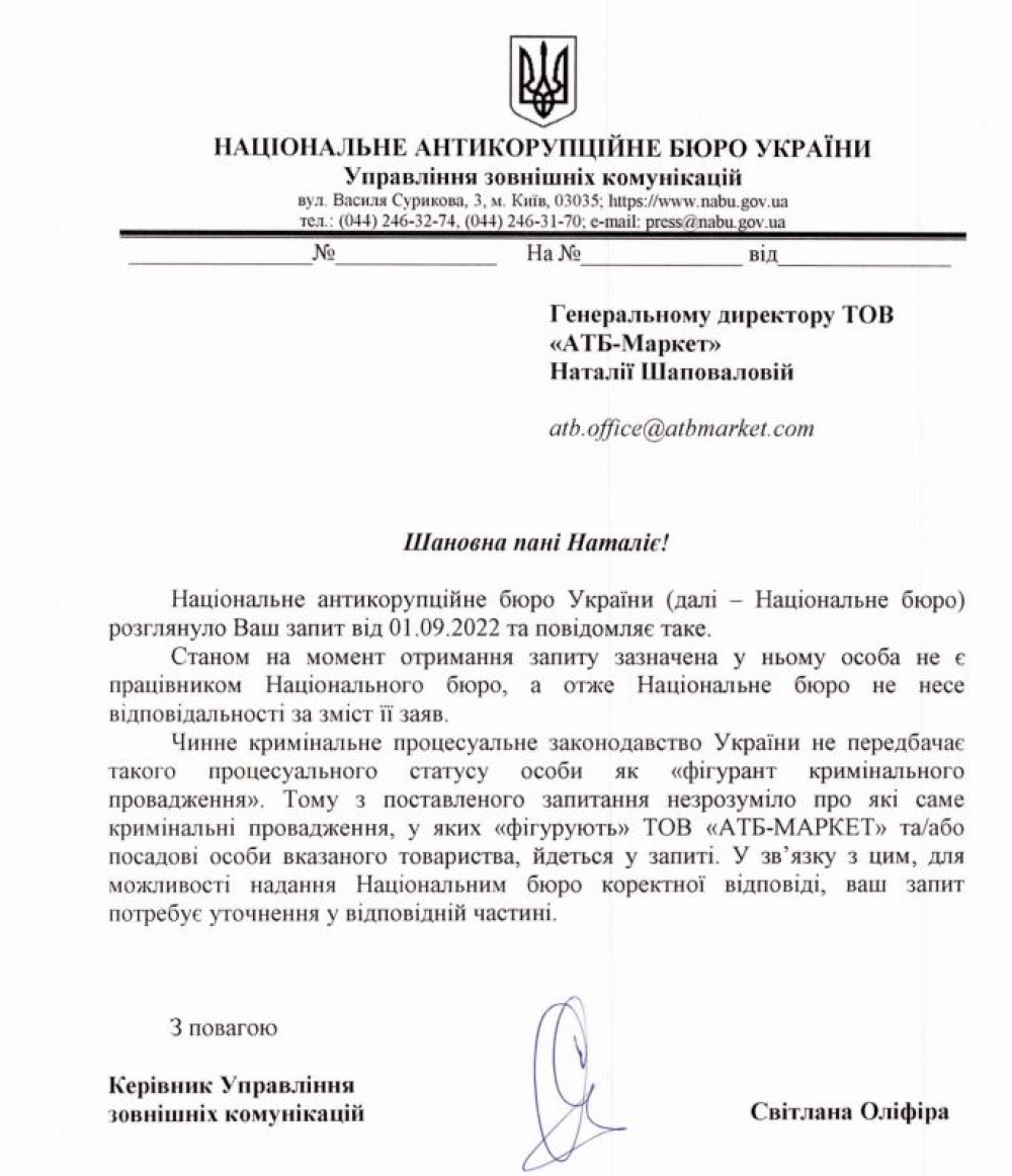 НАБУ офіційно підтвердило непричетність АТБ до ситуації з гуманітаркою в Запоріжжі (новини компаній)У НАБУ відповіли на запит АТБ щодо фейкових повідомлень про реалізацію гуманітарки, та підтвердили непричетність ритейлера. Після декількох фейкових повідомлень про нібито причетність мережі «АТБ» до продажу гуманітарної допомоги в Запоріжжі, що з'явилися в десятках інтернет-ЗМІ наприкінці серпня, компанія «АТБ-Маркет» звернулася за роз'ясненнями до НАБУ. Нагадаємо, що тоді неперевірену та недостовірну інформацію розповсюджували з посиланням на нібито працівника антикорупційного бюро Євгена Шевченка. У більшості випадків інтернет-ресурси навіть не намагалися отримати коментар від «АТБ», хоча така можливість завжди є. Тож у повідомленнях містилася лише одна неперевірена, недостовірна та заснована на неправдивих судженнях точка зору. І це ще не все. Як говориться в офіційній відповіді Національного антикорупційного бюро України, «станом на момент отримання запиту зазначена у ньому особа не є працівником Національного бюро, а отже, НАБУ не несе відповідальності за зміст її заяв » Простіше кажучи, фейкові повідомлення розповсюджувала не менш фейкова особа. Окрім того, лідер вітчизняного ритейлу не згадується у жодних кримінальних провадженнях. Більш того, в НАБУ запевнили, що навіть процесуального статусу «фігурант кримінального впровадження» у чинному законодавстві України не існує. Хто саме та з якою метою намагався кинути тінь на бездоганну репутацію патріотичного бізнесу, лишається лише здогадуватись. Але розхитувати країну під час війни, намагатися вивести з рівноваги системний і соціально орієнтований український бізнес – це питання, які потребують сьогодні пильної уваги з боку тих самих правоохоронних органів на кшталт НАБУ. «Шановні! Досить хайпувати на відомих брендах, отримуючи для себе тисячі хибних вподобайок і репостів Йде війна! У всіх нас є єдині спільні завдання та спільна мета – перемогти ворога, підтримати наших воїнів і державу у цій боротьбі», – звернувся до медіа на власній сторінці у Facebook Борис Марков, голова Ради директорів, генеральний директор корпорації «АТБ». Саме «АТБ» сьогодні фактично є форпостом продовольчої безпеки країни. З перших днів війни компанія надає підтримку українським військовикам, внутрішнім переселенцям, медичним установам, збирає кошти на лікування постраждалих дітей. Понад три тисячі працівників «АТБ» вступили до лав ЗСУ, змінивши звичну уніформу на військове спорядження, та стали на захист української незалежності та суверенітету. А десятки тисяч їхніх колег у різних куточках нашої країни, також ризикуючи власним життям, стоять на варті продовольчої безпеки та заслуговують лише на подяку. СМЕРТЬ РОСІЙСЬКИМ ОКУПАНТАМ! Помітили помилку? Виділяйте слова з помилкою та натискайте control-enter |