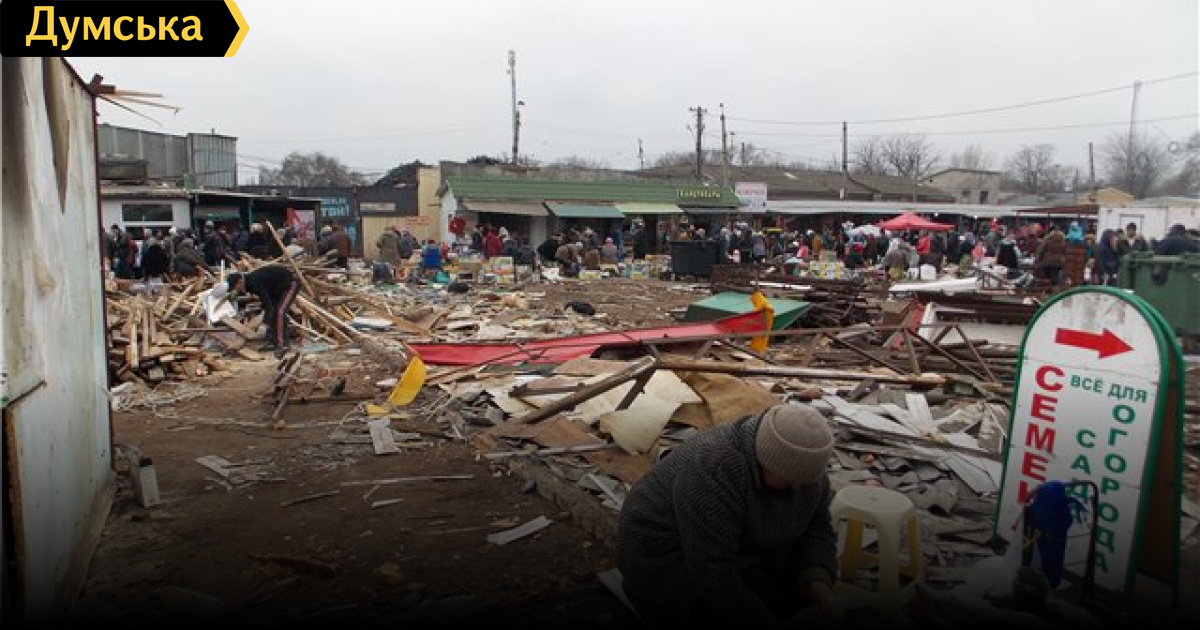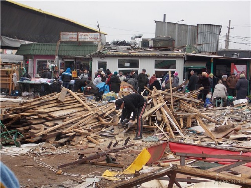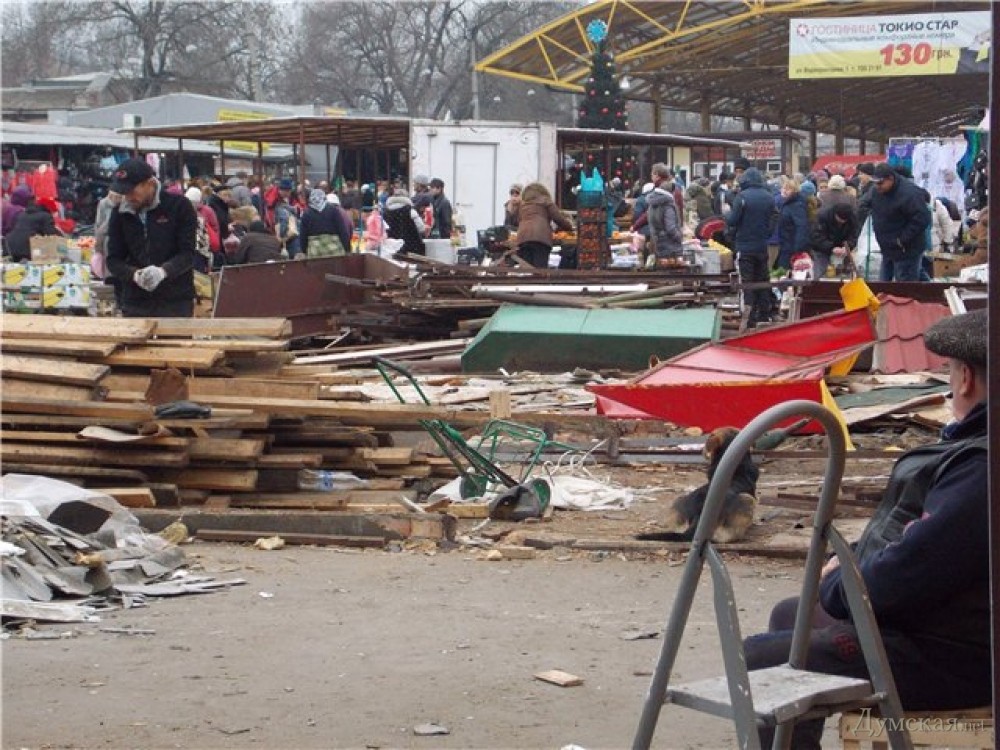 Ну, реконструкция, реконструкцией. А почему демонтаж павильонов и лотков выполняется без ограждения? Не ровен час и какая-нибудь балка свалится на голову торгующих или покупающих там людей.