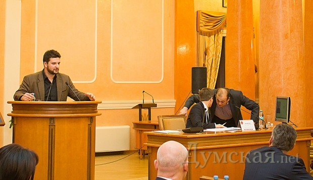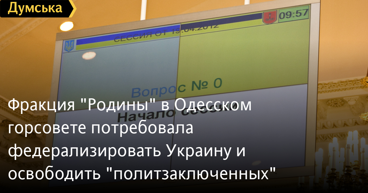 Представитель фракции партии «Родина» Игорь Димитриев зачитал альтернативный проект заявления, в котором осуждается «безответственная и непоследовательная» политика главы государства, содержатся призывы к прекращению политических репрессий и давления на СМИ, а также к федерализации государства, которая позволит защитить одесситов от столичных катаклизмов.