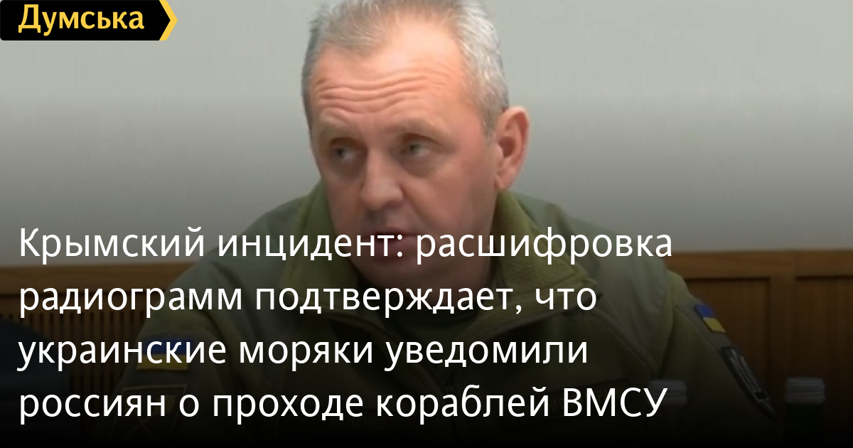 «Есть подтверждение еще двух радиограмм, в которых четко звучит, что наш малый бронированный катер «Бердянск» запрашивает и общается с диспетчером поста технического наблюдения береговой охраны ФСБ РФ. Там заявляется (цитирует): «Согласно договору о российско-украинской государственной границе и договору про сотрудничество при использовании Азовского моря и Керченского пролива, корабли Военно-морских сил могут безопасно проходить через пролив. Что касается лоцмана, то готовы принять на борт и следовать плану».