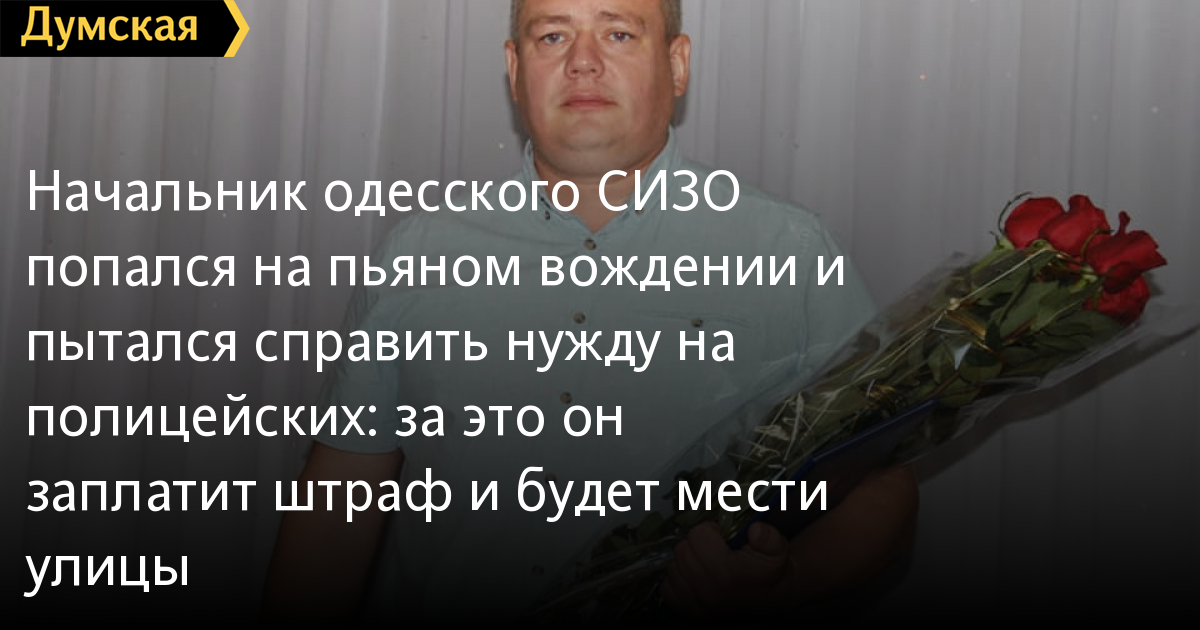 Начальник одесского СИЗО попался на пьяном вождении и пытался справить нужду на полицейских: за это он заплатит штраф и будет мести улицы