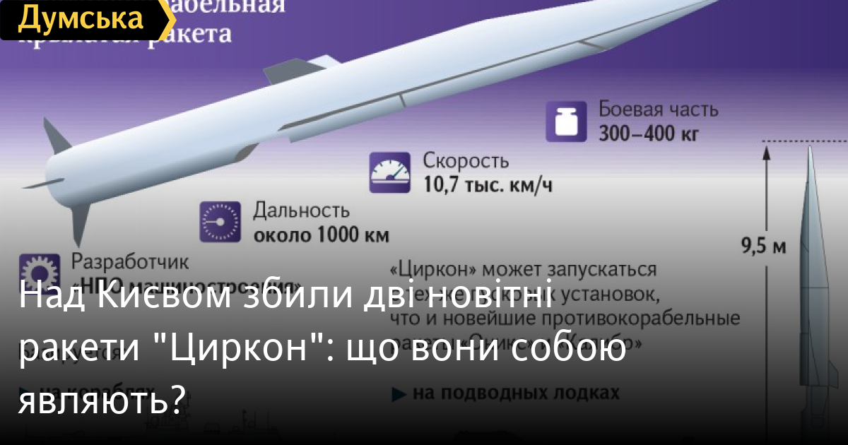 Над Києвом збили дві новітні ракети «Циркон»: що вони собою являють?Дві балістичні ракети збили українські зенітники над Києвом о 10:30. За даними Повітряних сил Збройних сил України, цілі рухалися з Криму. Моніторингові канали повідомляють, що цілі пролетіли 580 кілометрів і досягли столиці за приблизно три хвилини, що означає, що вони рухалися з гіперзвуковою швидкістю. Найвірогідніше, окупанти вдруге використали свої новітні протикорабельні ракети «Циркон». Перше «знайомство» з такою ракетою відбулося 7 лютого, коли вона прилетіла до Києва і вибухнула на дорозі, пошкодивши прокладені під землею кабелі. Минулого разу «Циркон» був одним із компонентів комбінованої ракетної атаки, тож зміг пробитися через ешелоновану столичну ППО. Сьогодні ж дві ракети були єдиними цілями на радарах зенітників, тож були вражені, скоріш за все, системами Patriot. Це доводить, що не дивлячись на вельми вражаючі характеристики нової російської ракети, вона, так само як і «Кинджал» — доступна ціль для американських зенітних комплексів. Уламки «цирконів», на жаль, призвели до значних пошкоджень кількох будинків у столиці. Частково зруйновано будівлю Академії декоративно-прикладного мистецтва та дизайну імені Бойчука. Поранено сімох людей, на щастя, обійшлося без загиблих. Однак цілями ракет були куди важливіші об'єкти, ймовірно ті самі установки Patriot. Слід зазначити, що поки що досить рідкісні запуски «Цирконів» для росіян — це свого роду «проба пера». Нові ракети, найімовірніше, надходять в армію буквально штучно, і зараз їх використання можна розцінювати як випробування в бойових умовах. Зазначимо, що протикорабельні ракети «Циркон» розроблялися насамперед як зброя для російських важких атомних ракетних крейсерів («Петр Великий» — у строю, «Адмірал Кіров» на вічному ремонті), фрегатів проєкту 22350 «Адмірал Горшков», атомних підводних човнів і перспективних кораблів ворожого військово-морського флоту. Оскільки таких носіїв у Чорному морі немає, то ракети запускають із наземних універсальних вертикальних пускових контейнерів, що дає змогу росіянам випробувати «циркони» в бойових умовах. Те, що «патріотам» вдалося збити дві такі ракети, — чудова новина, але такий підсумок запусків буде також цікавий інженерам російської оборонки, які перевіряють уразливості своєї нової зброї у протидії з системами свого головного потенційного противника і також роблять із цього висновки. Про випробування «Циркону» вперше стало відомо у 2016 році. Скільки ракет до цього перебували в розробці — невідомо. У наступні роки путін кілька разів похвалився «аналоговнетними» характеристиками ракети, а потім у серпні 2022 року шойгу відрапортував, що її прийняли на озброєння. Випробування ракети відбувалися на північному флоті рф, для якого вона насамперед і призначається. Попри фанфари російської пропаганди, «Циркон» скоріше за все залишається штучною, експериментальною зброєю, стан якої ще далекий від масової передачі у війська, особливо в умовах максимального завантаження російських оборонних підприємств замовленнями на виробництво більш «звичних» ракет, якими окупанти масово обстрілюють Україну. Тим не менш, це грізна зброя, яку, як і «кинджали», росіяни приберігають для особливих випадків. І скоріш за все її характеристики покращаться у оглядному майбутньому