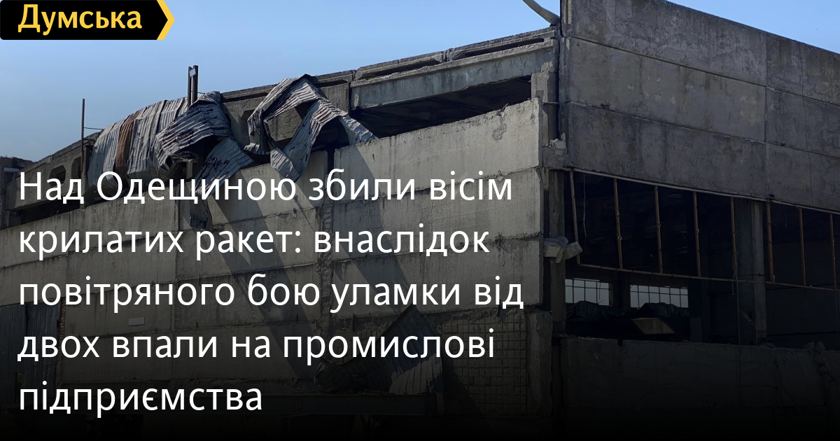 Внаслідок повітряного бою збиті ракети впали на будівлі промислових підприємств, які зазнали пошкоджень.