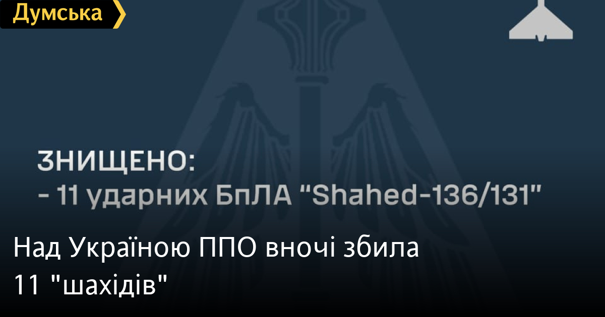 Сили протиповітряної оборони вночі знищили 11 дронів-камікадзе з 15 запущених росіянами.
