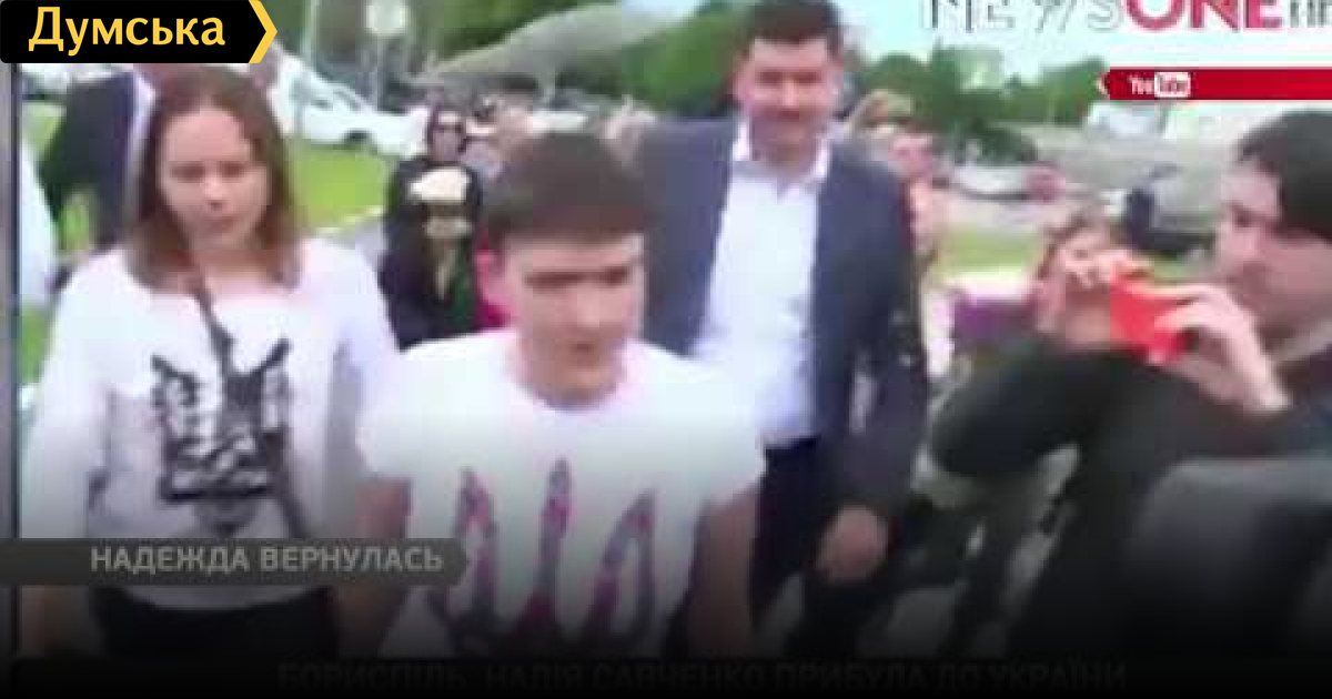 Надежда Савченко на свободе. Самолет с украинской летчицей приземлился в аэропорту Борисполь в Киеве. Вопрос ее освобождения был окончательно решен в ночь на двадцать пятое мая в ходе переговоров между Путиным, Порошенко, Меркель и Олландом. Незаконно осужденную пленницу обменяли на российских спецназовцев Александра Александрова и Евгения Ерофеева СМЕРТЬ РОСІЙСЬКИМ ОКУПАНТАМ! Помітили помилку? Виділяйте слова з помилкою та натискайте control-enter Думская ТВ. Сюжеты: