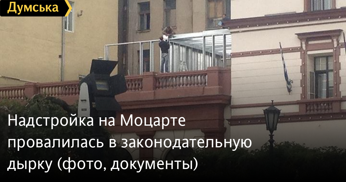 Статья 5 Закона Украины «Об охране культурного наследия» прямо уполномочивает министерства давать разрешения на проведение работ в исторических ареалах населенных пунктов. Поэтому основной вопрос относительно законности надстройки «Моцарта» на сегодня звучит так: «Может ли считаться согласование историко-архитектурного обоснования 2009 года разрешением»?