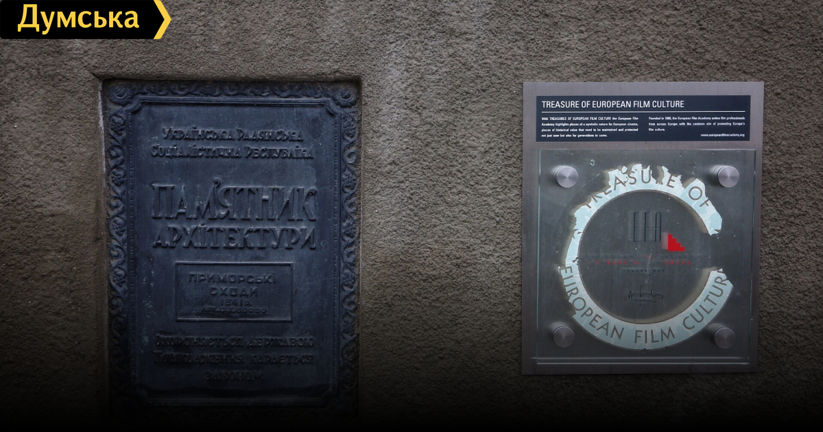 Кто сэкономил? Так рассуждаете, будто ее сделали в Одесском горсовете. Это награда Европейской киноакадемии. Откуда академики знали, что эту табличку влепят в стену, а не разместят в краеведческом музее, например. Чугунная рядом существует 70 лет, а эту из стекла не пощадила природа.