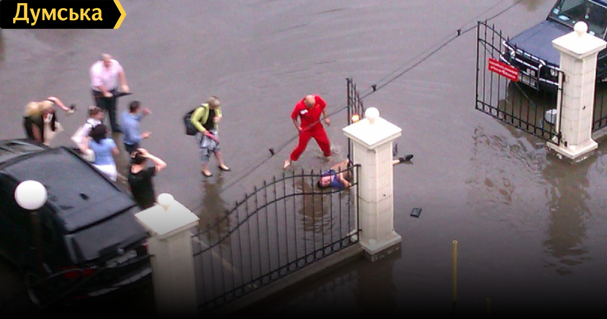 Как сообщала Думская вчера, последствия 7-часового дождя оставили множество проблем. Улица Балковская в районе Приморского суда полностью залита водой. Движения здесь фактически не было. Вечером того же дня в районе Приморского суда от удара током погиб 25-летний канцелярист суда.