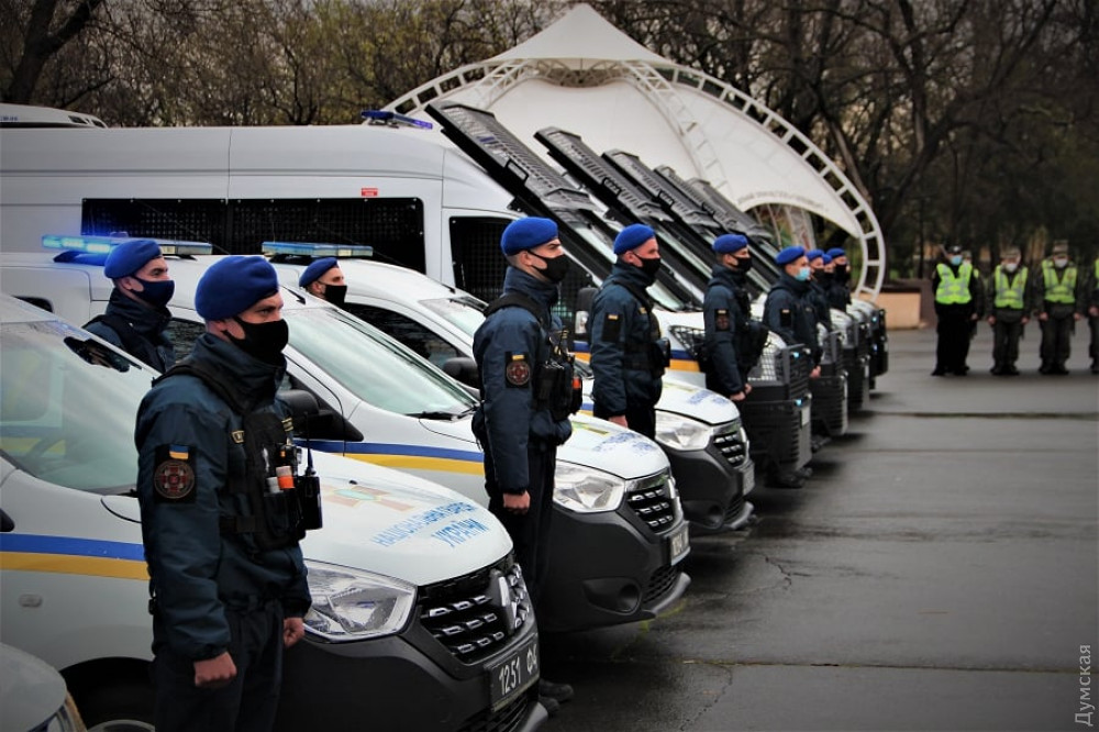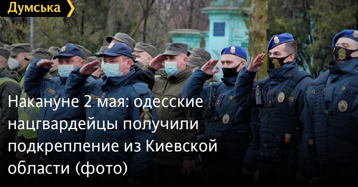 Накануне 2 мая: одесские нацгвардейцы получили подкрепление из Киевской областиМобильный резерв части Национальной гвардии №3027 из Вышгорода Киевской области прибыл в Одессу для усиления местных правоохранителей во время обеспечения общественного порядка на седьмую годовщину трагических событий 2 мая, а также на майские праздники. Как сообщили в Южном оперативно-территориальном объединении НГУ, в одесском парке Шевченко прошел смотр нацгвардейцев – военнослужащих одесской части №3012 и их прибывших из-под Киева коллег. «Главная задача для всех военнослужащих — обеспечить охрану общественного порядка на маршрутах патрулирования и во время массовых мероприятий», — отметил командир воинской части полковник Вячеслав Краснопольский. СМЕРТЬ РОСІЙСЬКИМ ОКУПАНТАМ! Помітили помилку? Виділяйте слова з помилкою та натискайте control-enter