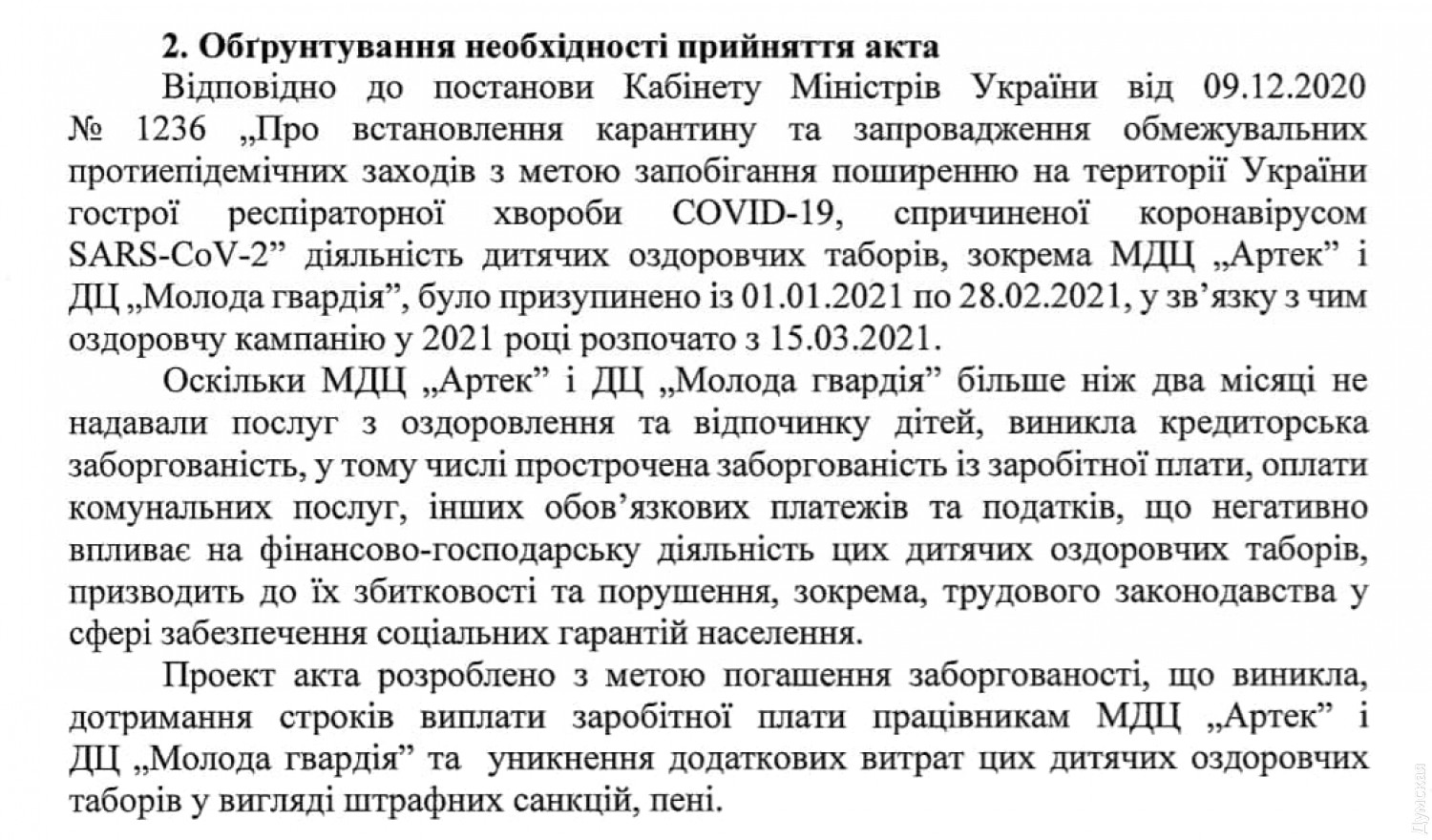 Одесский центр «Молодая гвардия» получит материальную помощь из государственного бюджетаВ преддверии летних каникул и начала курортного сезона Кабинет Министров Украины принял решение об оказании помощи детским оздоровительным лагерям — детскому и молодежному центру «Артек», который переехал из Крыма в Пущу-Водицу под Киевом, и детскому центру «Молодая гвардия» в Одессе. Как рассказал «Думской» народный депутат от партии «Европейская Солидарность» Алексей Гончаренко, это связано с особыми условиями режима работы оздоровительных лагерей во время карантина. Из-за локдаунов и нахождения в «красной зоне» детские центры не работали более двух месяцев, поэтому у них возникла задолженность по заработной плате и оплате коммунальных услуг. Всего из государственного бюджета на «Артек» и «Молодую гвардию» выделено 243 млн 500 тысяч гривен. Напомним, что одесский центр «Молодая гвардия» работал до 5 апреля — несмотря на ухудшение эпидситуации и зафиксированные случаи COVID-19, 582 ребенка из разных регионов Украины отдыхали в лагере полную смену. СМЕРТЬ РОСІЙСЬКИМ ОКУПАНТАМ! Помітили помилку? Виділяйте слова з помилкою та натискайте control-enter |