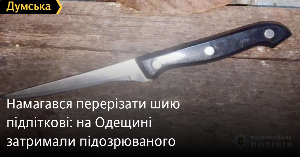 Намагався перерізати шию підліткові: на Одещині затримали підозрюваногоЗамах на вбивство 13-річного хлопчика стався в Вилковому. Як повідомили в поліції, горло дитині намагався перерізати раніше судимий за вбивство 34-річний місцевий житель. Напад стався ввечері 23 жовтня. Дитину шпиталізували. Поліцейські опитали хлопчика, який був у стресовому стані та мало що пам’ятав про чоловіка, який напав на нього. Вже протягом трьох годин правоохоронці вийшли на слід та затримали 34-річного місцевого жителя, який неодноразово притягували до адміністративної та кримінальної відповідальності. Два роки тому він вийшов із в'язниці, куди потрапив за вбивство. Свій вчинок чоловік не заперечував, однак пояснити мотиви не зміг. Слідчі вилучили ніж та одяг зловмисника. Підозрюваного затримали, вирішується питання щодо повідомлення йому про підозру та обрання запобіжного заходу. В рамках кримінального провадження призначать низку експертиз. Чоловіку загрожує довічне позбавлення волі. СМЕРТЬ РОСІЙСЬКИМ ОКУПАНТАМ! Помітили помилку? Виділяйте слова з помилкою та натискайте control-enter Новини по цій темі: 29 липня 2025: В Усатово Одеської області сталася перестрілка: поліція працює на місці (відео, оновлено) 28 липня 2025: П'яний на "Ягуарі" або гіпертонік? Звільнений топ-посадовець одеської поліції хоче повернутися на службу 19 червня 2025: Дівчинку, яку шукали сотні одеситів, знайшли вбитою: поліція працює з чоловіком, ймовірно причетним до загибелі 27 травня 2025: Увели гектар в університету: на Одещині засудили земельних аферистів, але без посадки і Хвоста |