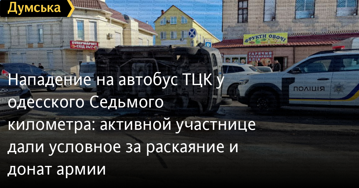 Нападение на автобус ТЦК у одесского «Седьмого километра»: активной участнице дали условное за раскаяние и донат армииУсловным сроком отделалась предпринимательница одесского «Седьмого километра» Елена Панчук, которая активно участвовала в нападении на военнослужащих ТЦК и СП в октябре прошлого года. Как передает корреспондент «Думской», Овидиопольский райсуд области признал ее виновной в препятствовании законной деятельности Вооруженных сил Украины, назначил наказание в виде 5 лет колонии, но освободил от него с трехлетним испытательным сроком. Женщину, которая, как и некоторые другие участники драки, содержалась под стражей, освободили в зале суда. Ранее она пошла на сделку с обвинением, полностью признав свою вину. А еще сделала донат защитникам на 100 тысяч грн. Это уже второй приговор по делу о силовом противодействии работе военкомата возле «Седьмого». В конце января тот же Овидиопольский суд дал три года условно одесситу Ивану Дубчаку. Инцидент, о котором идет речь, случился рано утром 30 октября 2025 года на Базовой улице. Согласно материалам следствия, группы оповещения ТЦК прибыли на промтоварный рынок с целью выдачи повесток военнообязанным гражданам Украины. Один из их автобусов заблокировали предприниматели и работники. Против военных применили газ из баллончиков, телескопические и резиновые дубинки. Бус основательно помяли, а потом перевернули. Несколько военнослужащих получили травмы. СМЕРТЬ РОССИЙСКИМ ОККУПАНТАМ! Заметили ошибку? Выделяйте слова с ошибкой и нажимайте control-enter |
