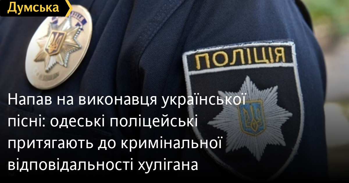 До кримінальної відповідальності за частиною 1 ст. 296 КК України (хуліганство) притягають одеські поліцейські містянина, який напав на вуличного музику.