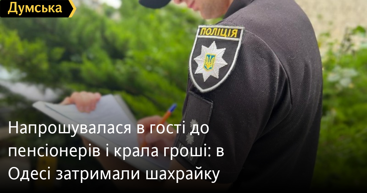 Напрошувалася в гості до пенсіонерів і крала гроші: в Одесі затримали шахрайкуПоліція затримала 43-річну іноземку, яка скоїла кілька крадіжок із квартир літніх жителів Пересипського району Одеси. У ГУНП повідомили, що фігурантка «спеціалізувалася» на пенсіонерах. Вона зустрічала на вулиці літніх жінок, вдавала, що вони старі знайомі, і напрошувалася до них у гості. Потрапивши до квартири, шахрайка виносила звідти гроші та цінні речі. Так, із житла 76-річної жінки на Генерала Бочарова зловмисниця викрала сумку з мобільним телефоном і заховані в шафі гроші. За кілька днів потрапила до квартири 82-річної одеситки на Махачкалинській і вмовила жінку віддати їй заощадження та коштовності, а також викрала в неї телефон. Сума завданих потерпілим збитків оцінюється у 28 тисяч гривень. Відкрито провадження за статтями 185 і 190 Кримінального кодексу України, затриманій загрожує до восьми років в'язниці. Помітили помилку? Виділяйте слова з помилкою та натискайте control-enter Новини по цій темі: 29 липня 2025: В Усатово Одеської області сталася перестрілка: поліція працює на місці (відео, оновлено) 28 липня 2025: П'яний на "Ягуарі" або гіпертонік? Звільнений топ-посадовець одеської поліції хоче повернутися на службу 19 червня 2025: Дівчинку, яку шукали сотні одеситів, знайшли вбитою: поліція працює з чоловіком, ймовірно причетним до загибелі 27 травня 2025: Увели гектар в університету: на Одещині засудили земельних аферистів, але без посадки і Хвоста |