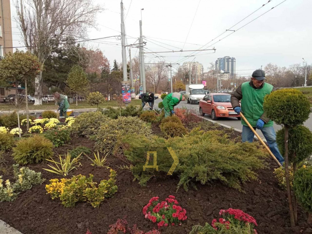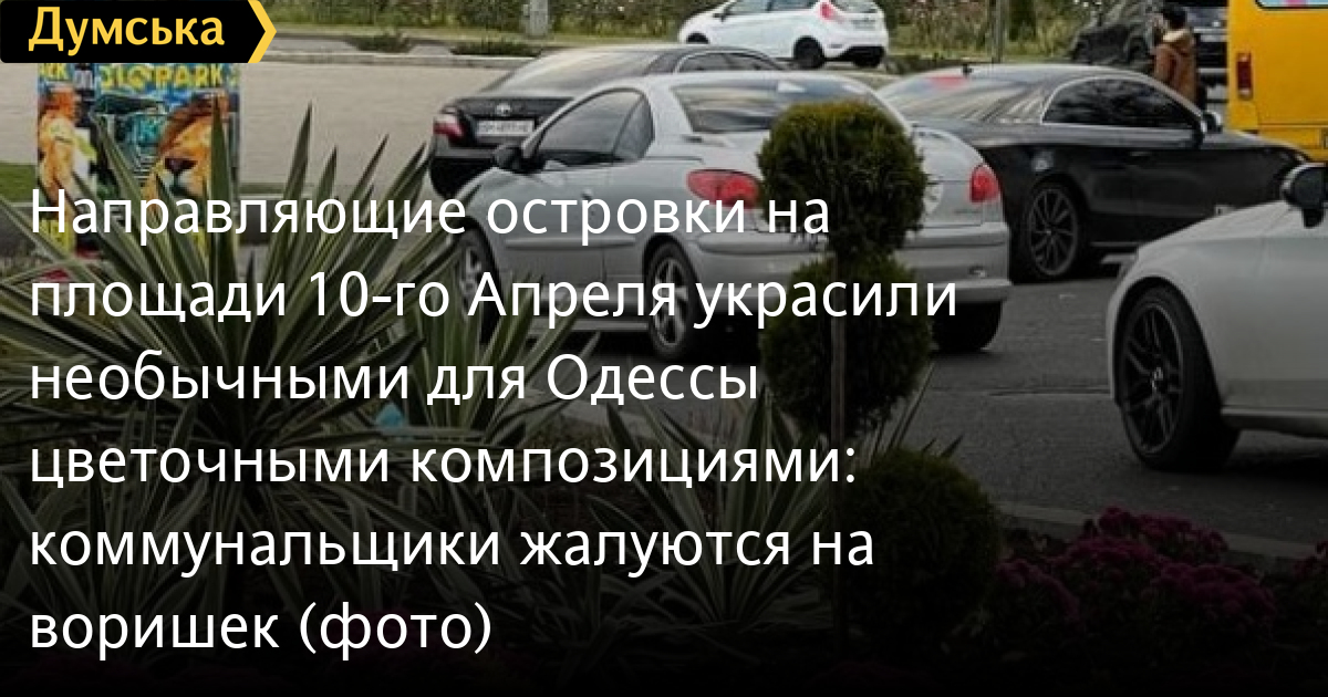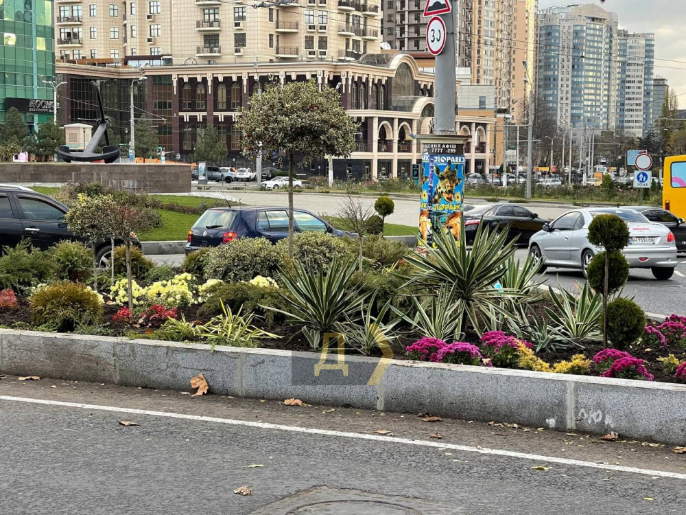 Направляющие островки на площади 10-го Апреля в Одессе украсили необычными для Одессы растительными композициями.
