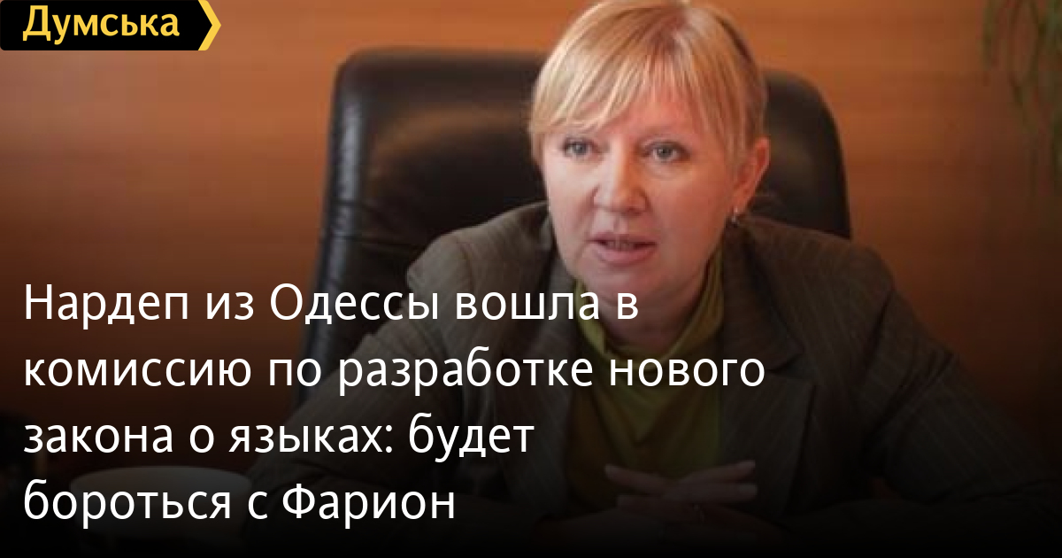 Нардеп из Одессы Светлана Фабрикант вошла в состав Временной специальной комиссии по подготовке проекта закона о развитии и применении языков в Украине, которую возглавил «свободовец» Руслан Кошулинский.
