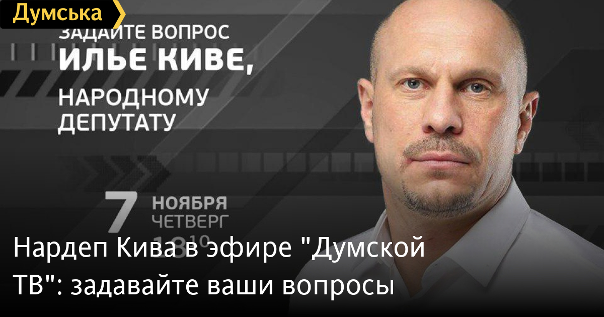 Народный депутат Илья Кива появится в прямом эфире «Думской ТВ« сегодня, 7 ноября, в 18:10.