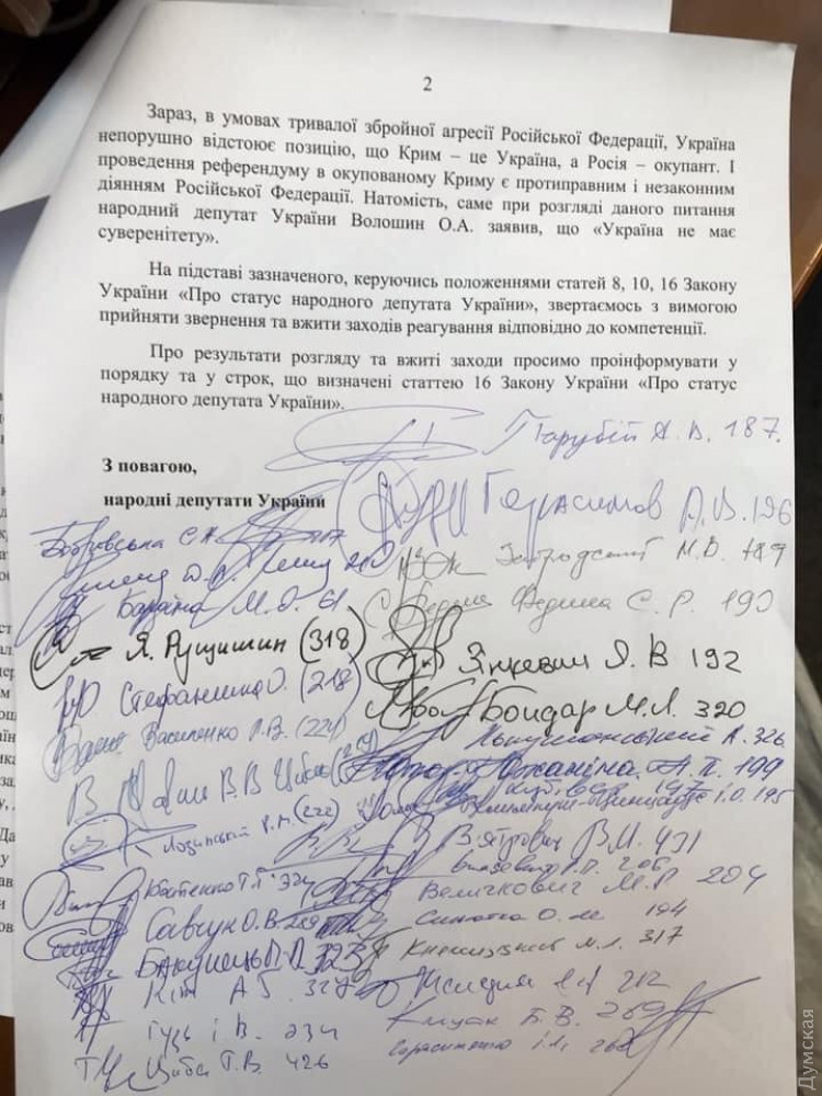 Нардепы потребовали от СБУ открыть производство против депутата ОПЗЖ за высказывание о суверенитете УкраиныНародные депутаты Украины от фракции «Европейская Солидарность», «Голос» и «Слуга народа» обратились к главе Службы безопасности Ивану Баканову с требованием открыть уголовное производство в отношении представителя ОПЗЖ Олега Волошина. Об этом сообщила нардеп от «Европейской Солидарности» Ирина Геращенко. Причиной обращения стало высказывание Волошина на заседании Верховной Рады о том, что у Украины нет суверенитета. Нардепы уверены, что подобные заявления подпадают под статью 110 УК Украины, которая предусматривает наказание за публичные призывы представителей власти с целью изменения границ территории или государственной границы Украины и нарушение порядка, установленного Конституцией Украины, с разжиганием национальной розни. «Как и обещали, обратились к руководству СБУ с требованием возбудить дело за преступление в ВР, когда депутат отрицал суверенитет Украины, а это - государственная измена», — подчеркнула Геращенко. Напомним, 21 июля из-за этого же высказывания активисты облили Волошина зеленкой возле здания Верховной Рады. СМЕРТЬ РОССИЙСКИМ ОККУПАНТАМ! Заметили ошибку? Выделяйте слова с ошибкой и нажимайте control-enter |