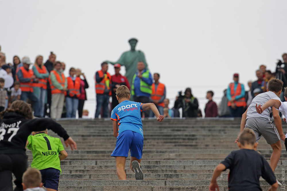 Как передает корреспондент «Думской», в рамках Дня физкультуры и спорта на импровизированных площадках возле Дюка показывали свое мастерство боксеры и футболисты, баскетболисты и тяжелоатлеты, шпажисты и каратисты. Но в самом ожидаемом забеге вверх по Потемкинской приняли участие более 500 бегунов в разных возрастных категориях.
