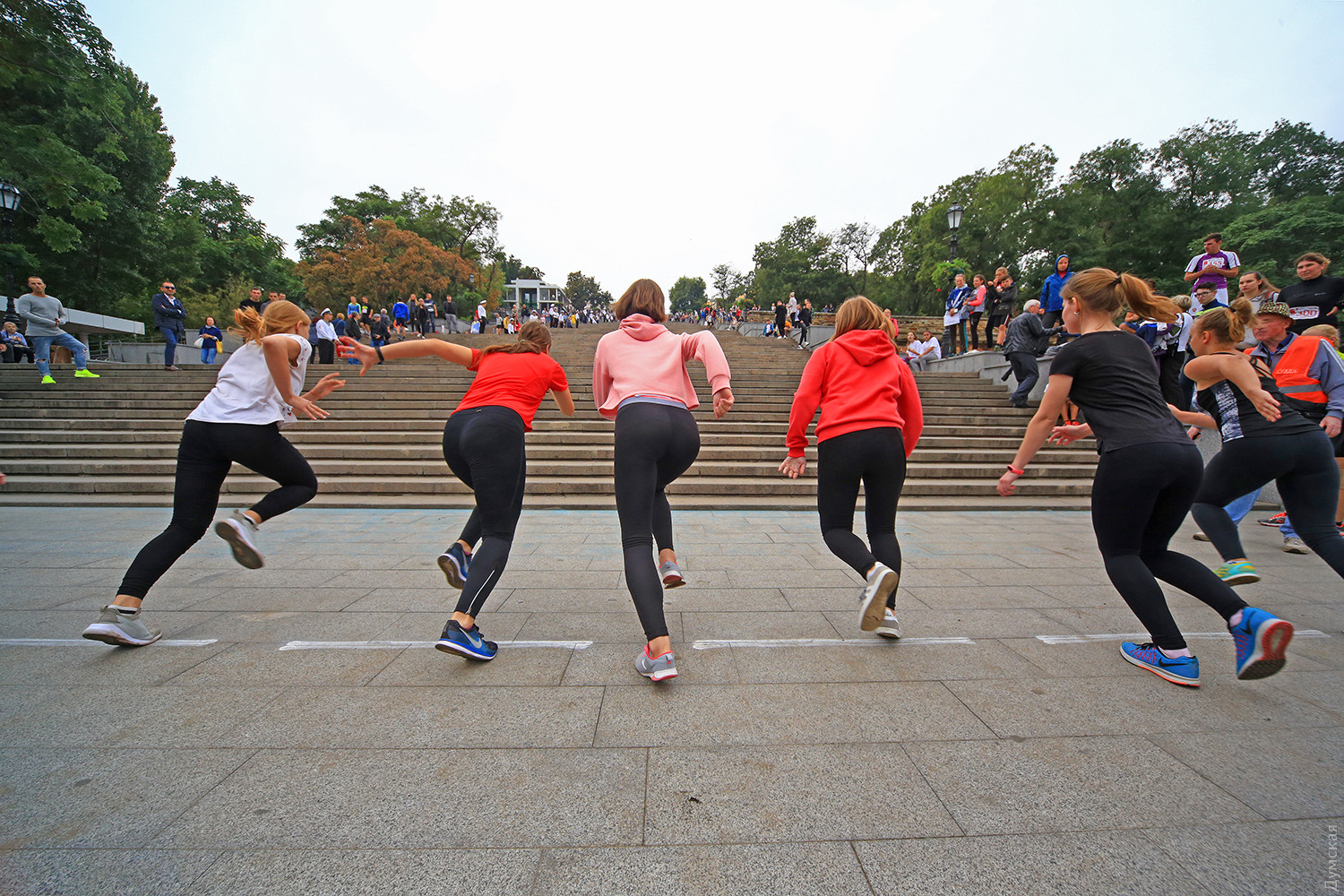 Сегодня на Приморском бульваре проходит масштабный спортивный праздник, ключевым событием которого стал традиционный забег по Потемкинской лестнице.