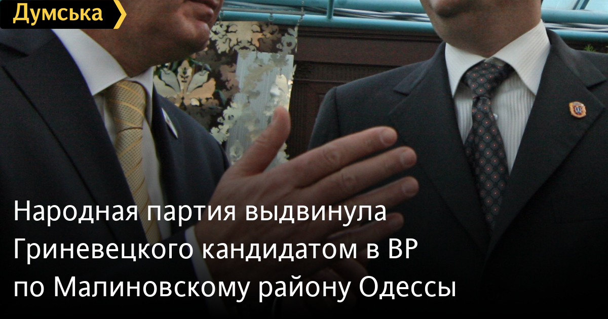 Народная партия выдвинула экс-губернатора Одесской области, нардепа Сергея Гриневецкого кандидатом в Верховную Раду по 134-му избирательному округу, охватывающему Малиновский район Одессы.