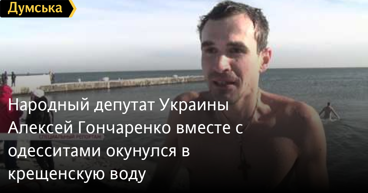 Народный депутат Украины Алексей Гончаренко вместе с одесситами окунулся в крещенскую водуОдесситы превзошли себя. На Крещенские купания – 2016 пришло больше людей, чем 2 года назад. Тогда купальщики установили рекорд Гиннеса. Вместе с одесситами, в крещенскую воду окунулся и народный депутат Украины Алексей Гончаренко СМЕРТЬ РОССИЙСКИМ ОККУПАНТАМ! Заметили ошибку? Выделяйте слова с ошибкой и нажимайте control-enter Думская ТВ. Сюжеты: