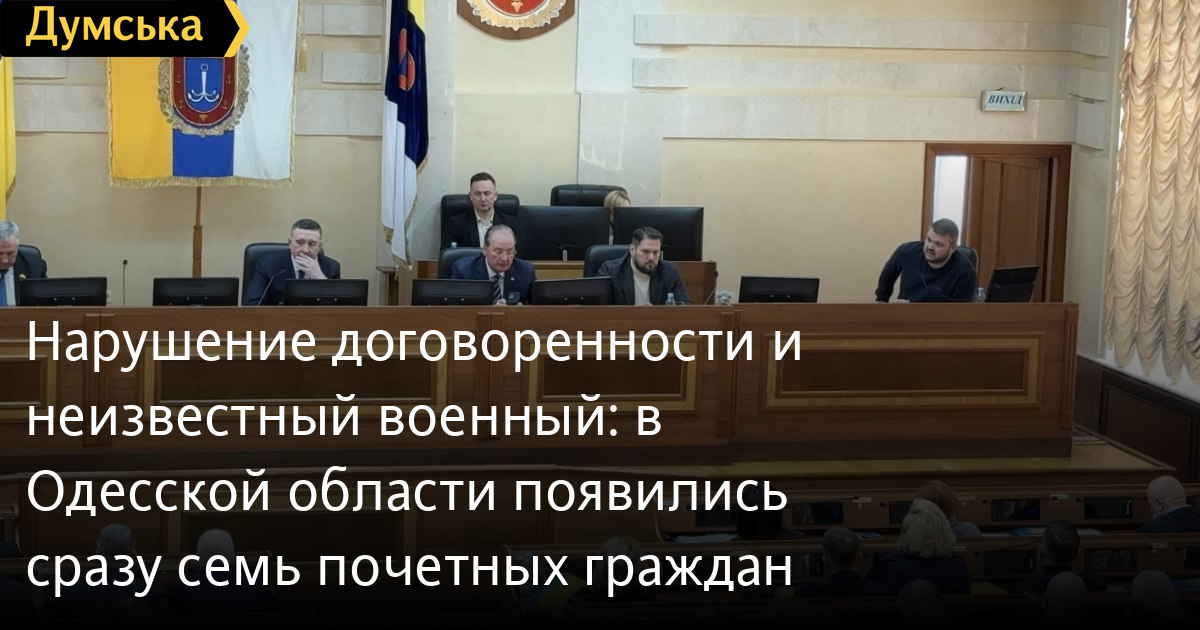 21:37 Нарушение договоренности и неизвестный военный: в Одесской области появились сразу семь почетных граждан