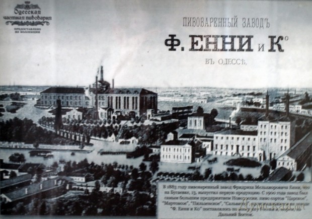 История одесского пива началась давно (ознакомиться с ней можно в более раннем исследовании автора). Уже в 1802 году, когда Одесса была, что говорится, в младшем школьном возрасте, в городе уже существовало две пивоварни. Но истинный расцвет одесского пивоварения начался в середине XIXвека, после введения в 1863 году системы акцизов на алкоголь и во многом благодаря немецким колонистам Люстдорфа и других поселений в окрестностях города. Немцы хорошо работали, а после хорошей работы были весьма не против испить не менее хорошего пива. Спрос рождает предложение — так и появились огромные заводы Енни, Санценбахера, Дурьяна, Бродского и более мелкие производства, работавшие не только на местный рынок, но поставлявшие свою продукцию даже в пивные заведения Владивостока!