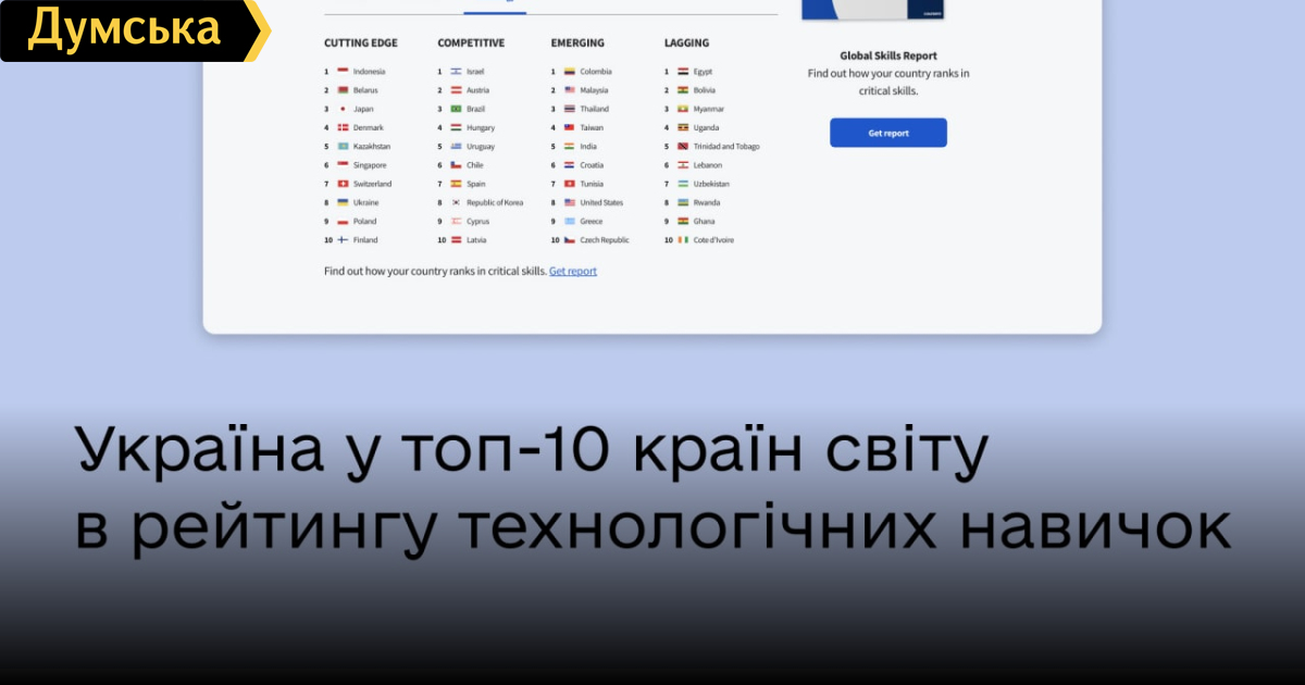 Компания крупного американского проекта по онлайн-образованию Сoursera обнародовала результаты ежегодного исследования Global Skill Report 2022, в котором анализируются тенденции по переквалификации более чем в ста государствах мира. В категории стран-лидеров Украина заняла 21 место. А в рейтинге по технологическим компетенциям — восьмое. Об этом сообщили в Министерстве цифровой трансформации. «Это значит, что украинцы — одни из лучших в мире в работе с компьютерными сетями, базами данных, операционными системами, инженерией безопасности, программной инженерией, компьютерным программированием, облачными вычислениями, веб-разработкой, разработкой приложений для мобильных устройств»,- отмечают в Министерстве. Украинцы продолжают развиваться в сфере цифровых технологий, а страна пытается им помочь. «Свыше миллиона украинцев уже прошли обучение на портале «Дія». Более 70 образовательных сериалов по цифровой грамотности размещены в бесплатном доступе, разработаны национальные тесты на цифровую грамотность, более 6000 хабов цифрового образования по всей Украине», — добавили в Минцифре. СМЕРТЬ РОСІЙСЬКИМ ОКУПАНТАМ! Помітили помилку? Виділяйте слова з помилкою та натискайте control-enter |