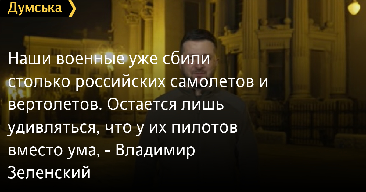 «Наши военные уже сбили столько российских самолетов и вертолетов, что остается лишь удивляться, что у их пилотов вместо ума. Неужели тоже пустота? Я сказал тоже не случайно, потому что пустота у них точно вместо сердца и вместо души, вместо всего, что делает людей людьми», — отметил глава государства.