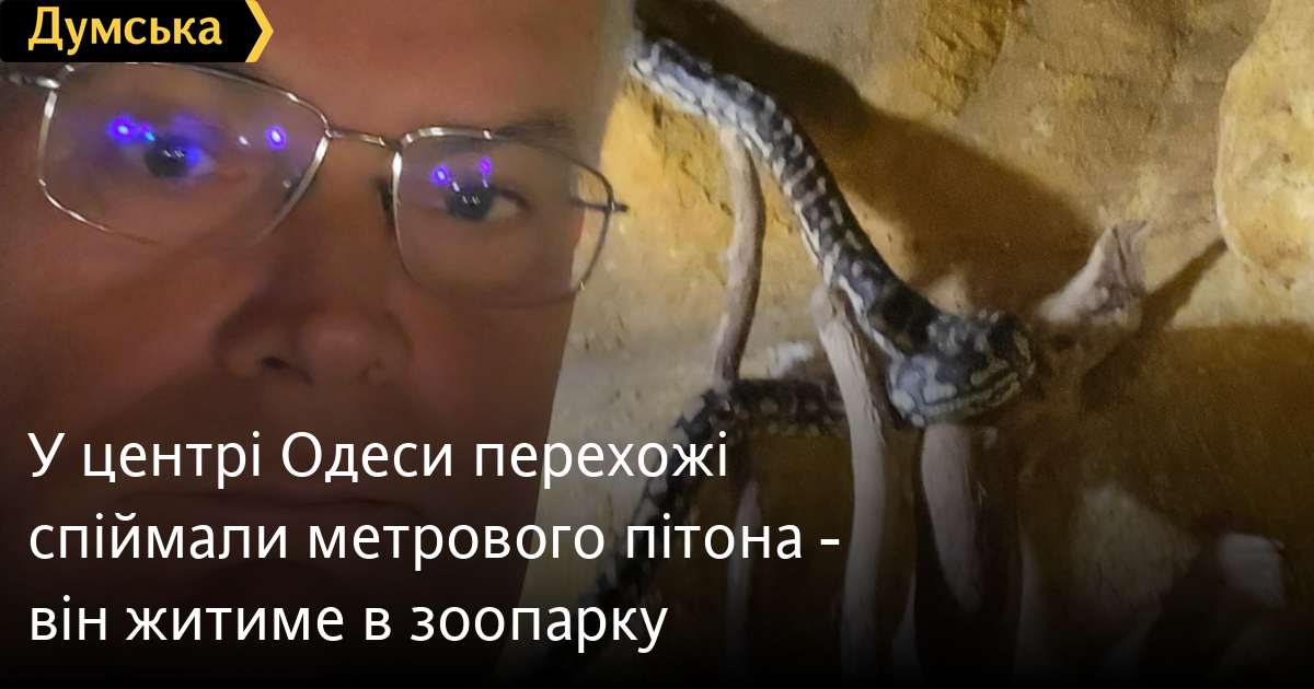 У центрі Одеси перехожі спіймали метрового пітона — він житиме в зоопаркуЗмію завдовжки понад метр виявили в неділю в центрі Одеси перехожі. Це виявився молодий килимовий пітон, якого спіймали і доправили до зоопарку, розповів «Думской» директор звіринця Ігор Бєляков. «Дорослі особини виростають до трьох метрів. Найімовірніше, він жив у когось у квартирі і втік від господаря. Ці змії живуть у тропіках, тому випустити його в живу природу ми не можемо», — зазначив Бєляков. Він також розповів, що для пітона вже знайшли місце в тераріумі. Цікаво, що таку дивовижну змію можна абсолютно вільно купити в Україні — пошук у мережі підказав, що молода самка пітона коштує 4200 гривень. СМЕРТЬ РОСІЙСЬКИМ ОКУПАНТАМ! Помітили помилку? Виділяйте слова з помилкою та натискайте control-enter |