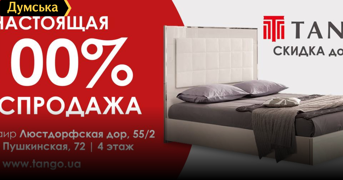 Настоящая 100% распродажа мебели в магазинах «Танго»: скидки до -80% (на правах рекламы)Настоящая 100% распродажа мебели — магазины «Танго» распродают всю экспозицию и складские запасы. Абсолютно на все спальни, гостиные, столовые и мягкую мебель от лучших итальянских дизайнеров предлагается реальная скидка до 80%. «Такого еще не было и больше не будет! Успейте купить по самой выгодной цене, ведь количество ограничено», — сообщают в компании. Приобрести мебель можно в фирменных салонах на Люстдорфской дороге, 55/2 в ЖК «Альтаир» и на Пушкинской, 72 (ЦУМ, 4 этаж). Также можно сделать онлайн-заказ на сайте магазина tango.ua. СМЕРТЬ РОСІЙСЬКИМ ОКУПАНТАМ! Помітили помилку? Виділяйте слова з помилкою та натискайте control-enter |