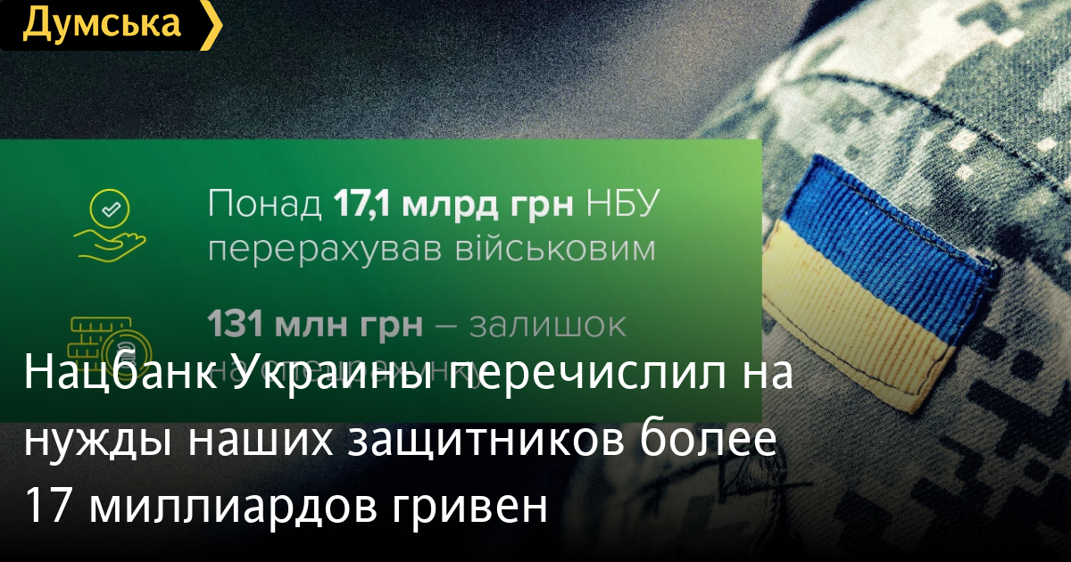 Свыше 17 миллиардов гривен перечислил Национальный банк Украины на нужды военнослужащих. На спецсчете, который был открыт для поддержки Вооруженных сил, остался 131 миллион.