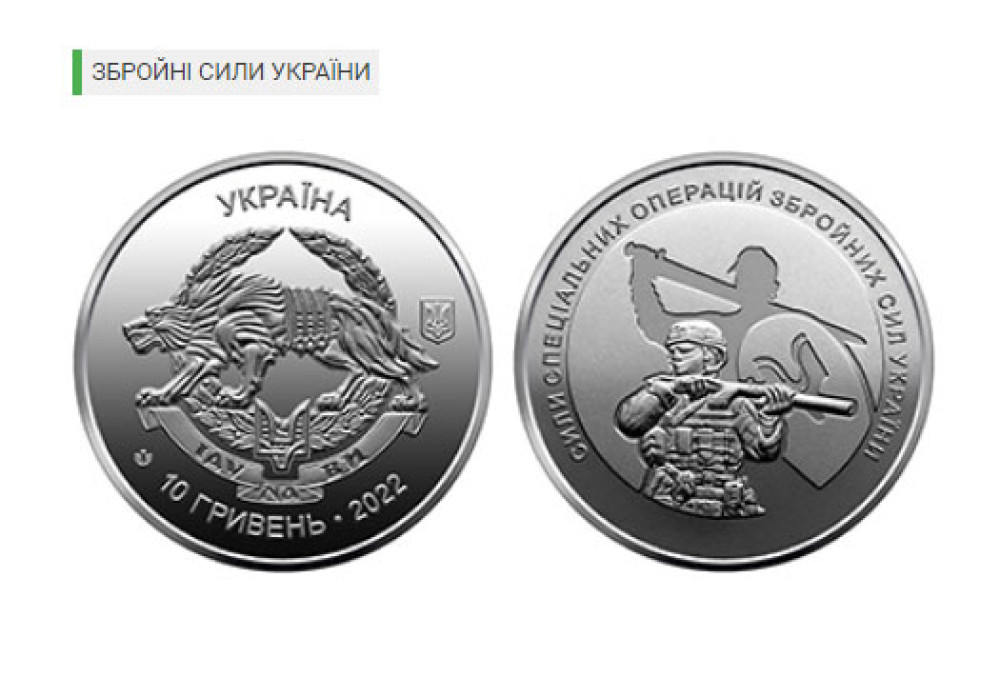 Чергова ціль українських та закордонних нумізматів виконана зі сплаву цинку та присвячена окремому роду сил Збройних сил України, які виконують складні бойові завдання на передовій фронту та в глибокому тилу супротивника — Сил спеціальних операцій.