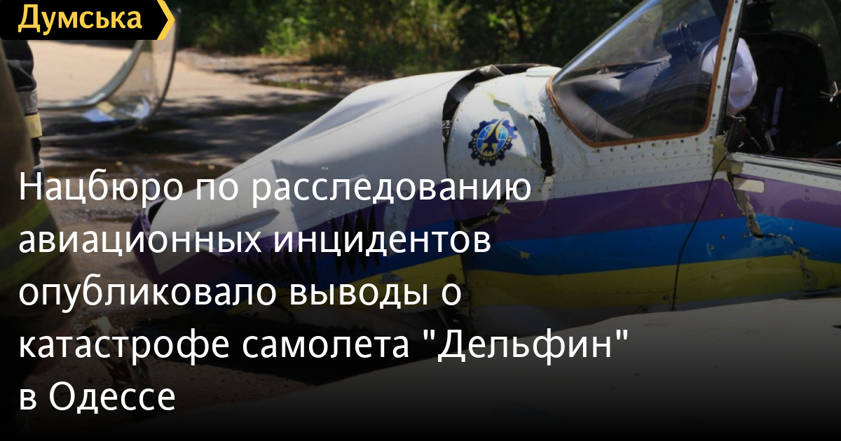 Национальное бюро по расследованию авиационных происшествий и инцидентов с гражданскими воздушными судами завершило расследование катастрофы легкомоторного самолета «Дельфин», которая случилась 17 июня 2020 года в Одессе.