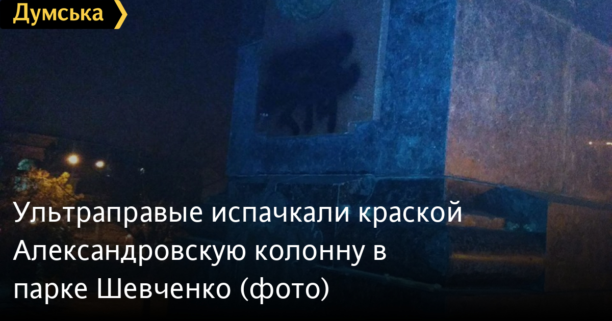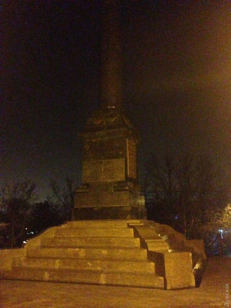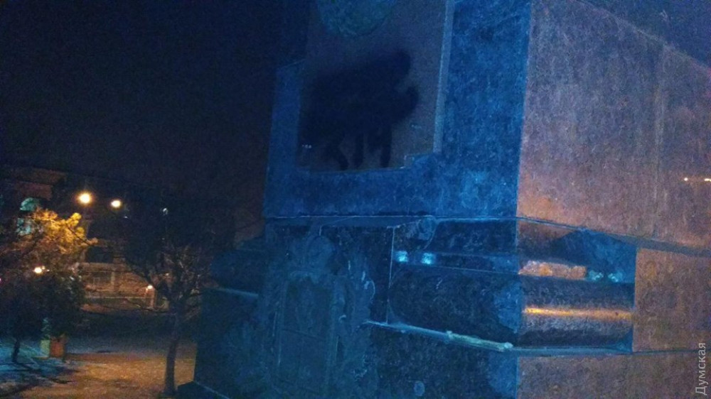 Активисты одесской ячейки националистической организации «С14» закрасили доску с именем российского императора Александра II на Александровской колонне в парке Шевченко.