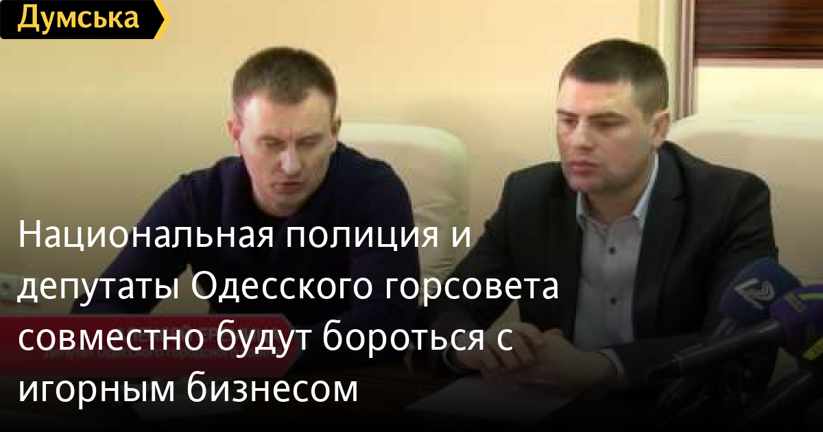 Национальная полиция и депутаты Одесского горсовета совместно будут бороться с игорным бизнесомИнициативная группа депутатов Одесского городского совета, в которую вошли представители всех политических сил, провели встречу с начальником полиции Гиорги Лорткипанидзе. На ней было принято решение объединить усилия в борьбе с незаконным игорным бизнесом. Больше расскажет Алла Есина. СМЕРТЬ РОССИЙСКИМ ОККУПАНТАМ! Заметили ошибку? Выделяйте слова с ошибкой и нажимайте control-enter Думская ТВ. Сюжеты: