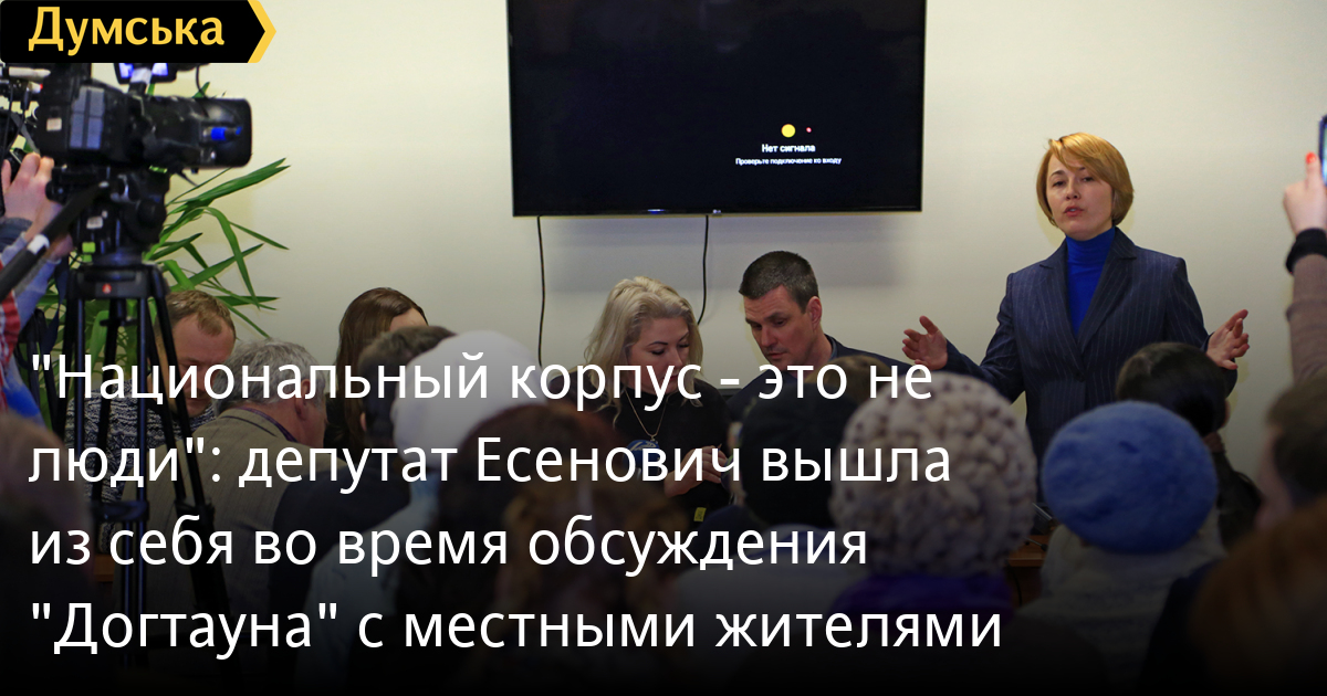 «Я одна выходила на улицу, чтобы остановить этих бандитов. «Национальный корпус» — это не люди», — заявила она, а на предложение жителей перенести территорию «Догтауна» подальше от жилой застройки Есенович вышла из себя и крикнула: «Это не вы будете решать».