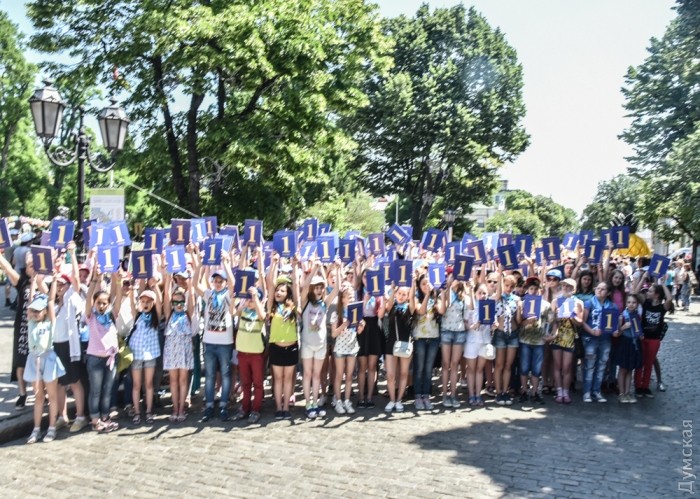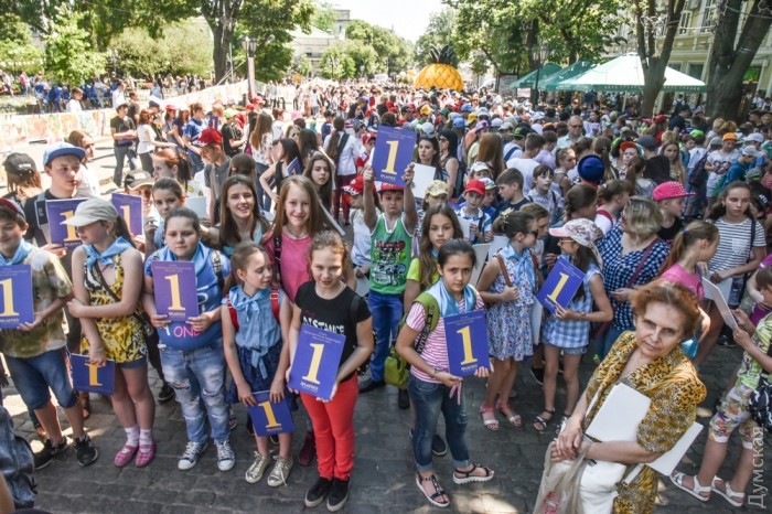 1120 маленьких одесситов выстроились сегодня в огромную цифру «1» на Дерибасовской улице.