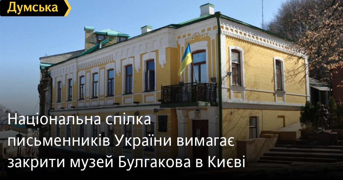 Секретаріат Національної спілки письменників України виступив зі зверненням, у якому члени організації вимагають негайно закрити музей Михайла Булгакова на Андріївському узвозі у Києві.