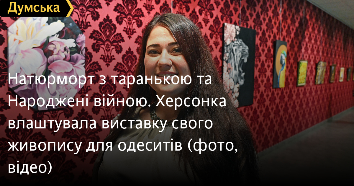 Натюрморт з таранькою та «Народжені війною». Херсонка влаштувала виставку свого живопису для одеситів (фото, відео)Перша персональна виставка мисткині з Херсону Богдани Баришевої відкралася в галереї «Сади Перемоги» (Академічена, 28). Переїхавши до Одеси, Богдана стала помітною учасницею низки групових виставок, а тепер її яскраві, декоративні роботи зайняли цілу залу. Експозиція «Арт-терапія» поєднала натюрморти (не тільки з квітами, є й пиво з таранькою), анімалістику, пейзажі, фантастичні жіночі портрети. «Малюю я вже вісім років, — розповідає дівчина. – За освітою бухгалтер. Починала з невеликих акварелей, потім перейшла на більш масштабні проекти. Займаюся розписом стін та пишу картини. Так склалася доля, що живопис став сенсом мого життя. Люблю олійні фарби, їхній аромат, текстуру та кольори, також малюю акрилом. Кожна картина відображає стан моєї душі. Я створила серію «Народжені війною», на полотнах зображені дівчата з вінками на головах, кожна символізує події, які пережила наша країна. Ідеї з’являються звідусіль: це спогади, відчуття та оточуюча нас краса». Автор — Ірен Адлер, фото Олександра Синельникова Помітили помилку? Виділяйте слова з помилкою та натискайте control-enter Новини по цій темі: 2 листопада 2025: «Амінь, і поїхали»: одеситам показали портрети відьом та козака-характерника (фото) 22 вересня 2025: Артист не може бути поза політикою: Dakh Daughters в Одесі розповіли про відьом, важкі міста і в який час краще жити 19 вересня 2025: Йому довірять робити раму для Караваджо: одеситам показали виставку литовського музейника |