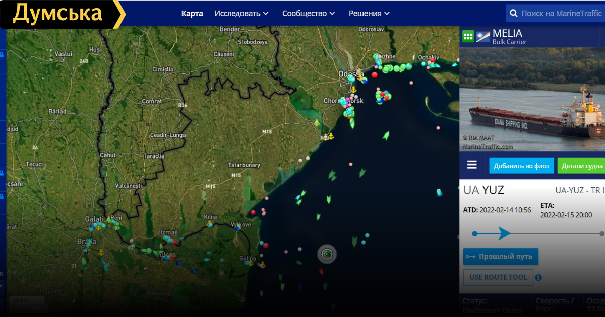 Балкеру Melia (флаг Маршалловых Островов) удалось пройти сегодня из порта Южный по новому маршруту — в обход зоны, которую закрыла для судоходства Российская Федерация. Об этом сообщил владелец частного порта ТИС Андрей Ставницер, передает корреспондент «Думской».