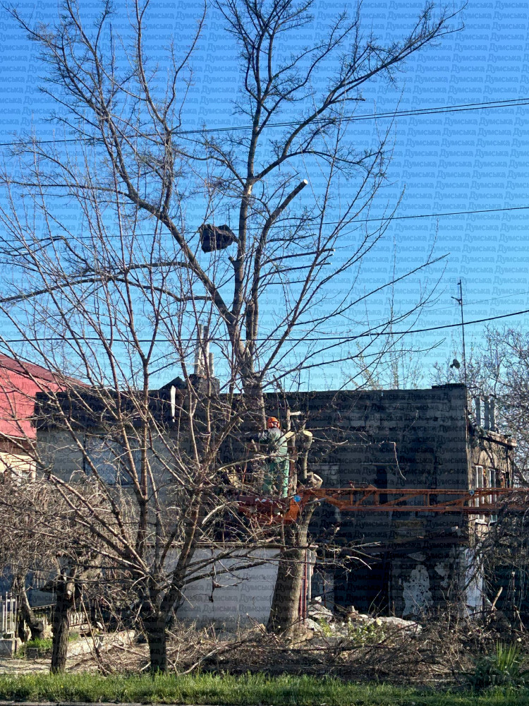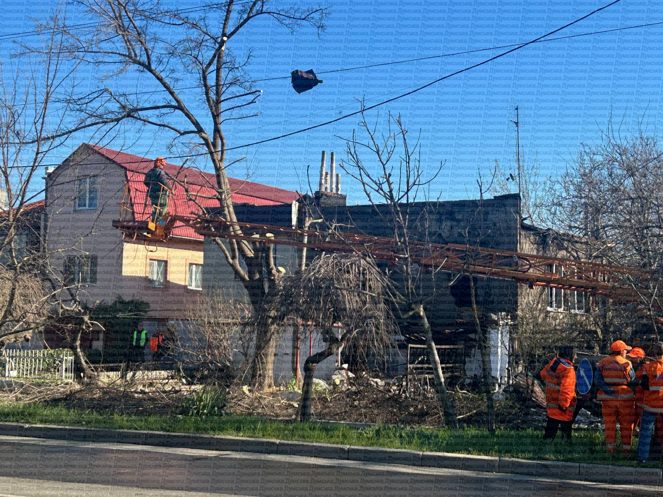 Энергетики приступили к восстановлению после разрешения от спасателей и военных. Специалисты выполняют осмотр оборудования, разбирают завалы, после приступят к ремонтам. Последствия атаки в частном секторе на Чубаевке.