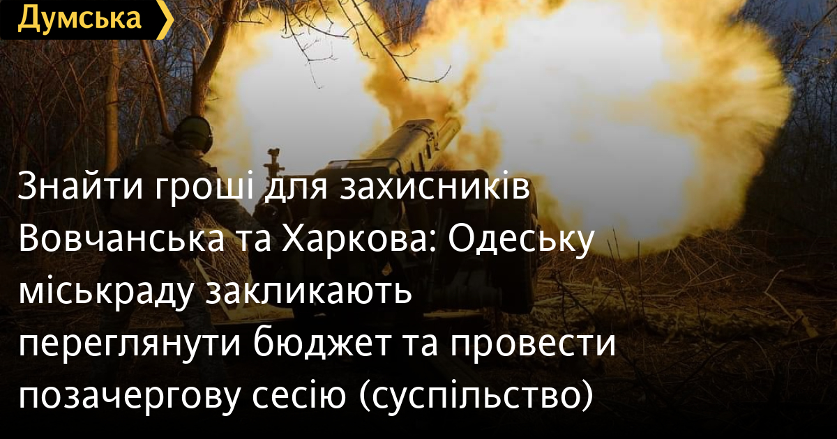 Знайти гроші для захисників Вовчанська та Харкова: Одеську міськраду закликають переглянути бюджет та провести позачергову сесію (суспільство)