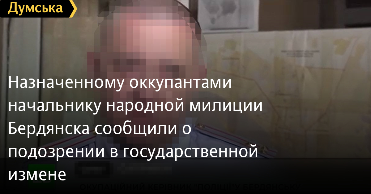 По данным следствия, в конце февраля, в условиях военного положения, находясь на территории временно оккупированного Бердянска, подозреваемый принял предложение представителей вооруженных сил российской федерации о сотрудничестве и был провозглашен начальником «народной милиции».