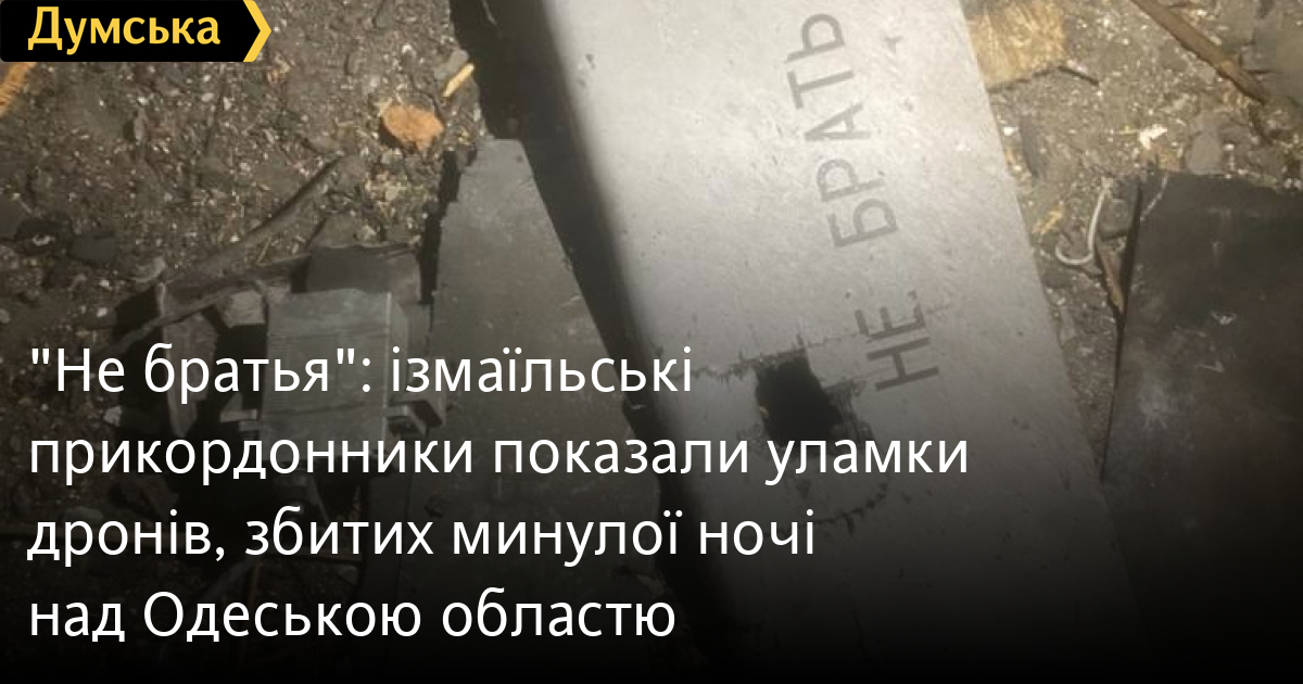 «Не братья»: ізмаїльські прикордонники показали уламки дронів, збитих минулої ночі над Одеською областюЧотири безпілотники типу Shahed-131/136 збили над Одеською областю минулої ночі ізмаїльські прикордонники. Відео збиття та фото уламків ворожих дронів опублікувала пресслужба прикордонного загону. «Символічно, що на корпусах безпілотників затертість літер у попереджувальних написах «не братися» утворила глибший зміст напису — «не братья», — розповіли прикордонники. Нагадаємо, минулої ночі російські окупанти знову атакували Ізмаїльський район. Ворог випустив сім крилатих ракет Х-101/Х-555/Х-55, балістичну ракету «Іскандер» та 25 дронів-камікадзе Shahed-136. Сили ППО збили всі ракети, а також 15 безпілотників. СМЕРТЬ РОСІЙСЬКИМ ОКУПАНТАМ! Помітили помилку? Виділяйте слова з помилкою та натискайте control-enter Новини по цій темі: 1 січня: Нічний удар по Одещині: пошкоджено енергетичну інфраструктуру та житлові будинки (фото, відео) 31 грудня 2025: Новорічний наліт: Одеса під ударом російських шахедів 25 грудня 2025: Ворог вночі атакував Одеську область: одна людина загинула, двоє отримали поранення (фото) 23 грудня 2025: Ворог атакував південь Одещини: пошкоджено суховантаж, приватні будинки та енергооб'єкт (фото) 22 грудня 2025: Ворог вночі атакував Одесу: постраждав чоловік, частина Пересипського району залишилася без світла |